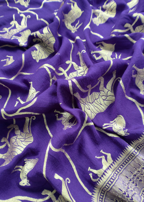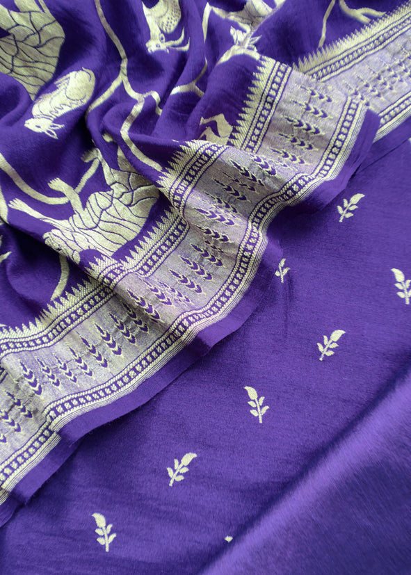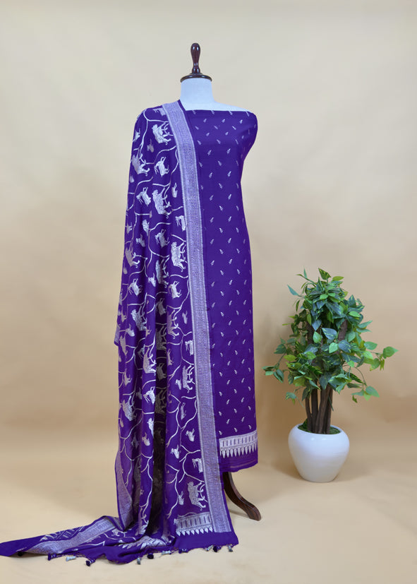 Kalasheel Luxe Purple Handloom Munga Silk Suit With Shikagarh Gold Weaving