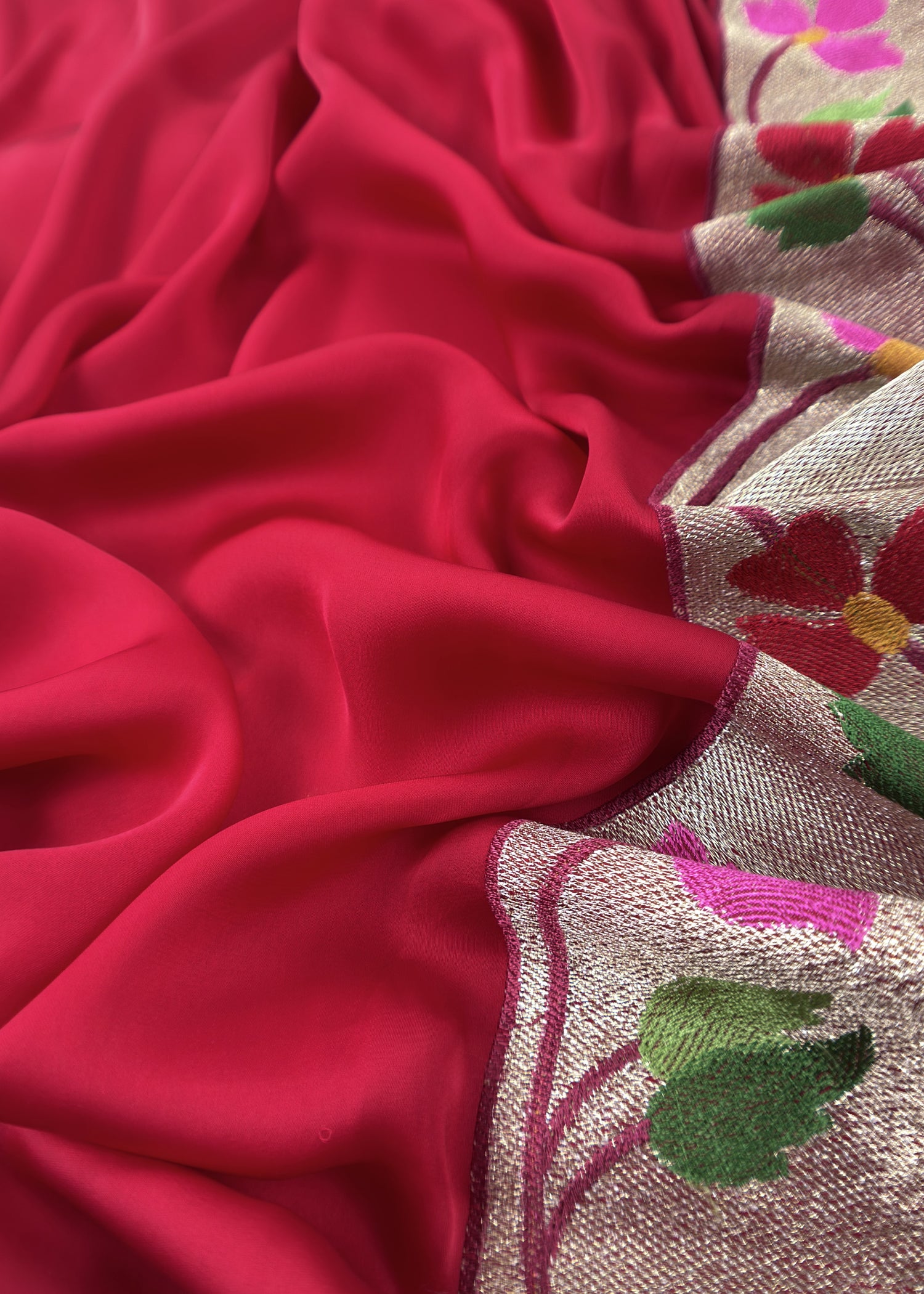 Laal Ishq Handloom Self Embroidered Satin Silk Suit Fabric With Paithani Weaving
