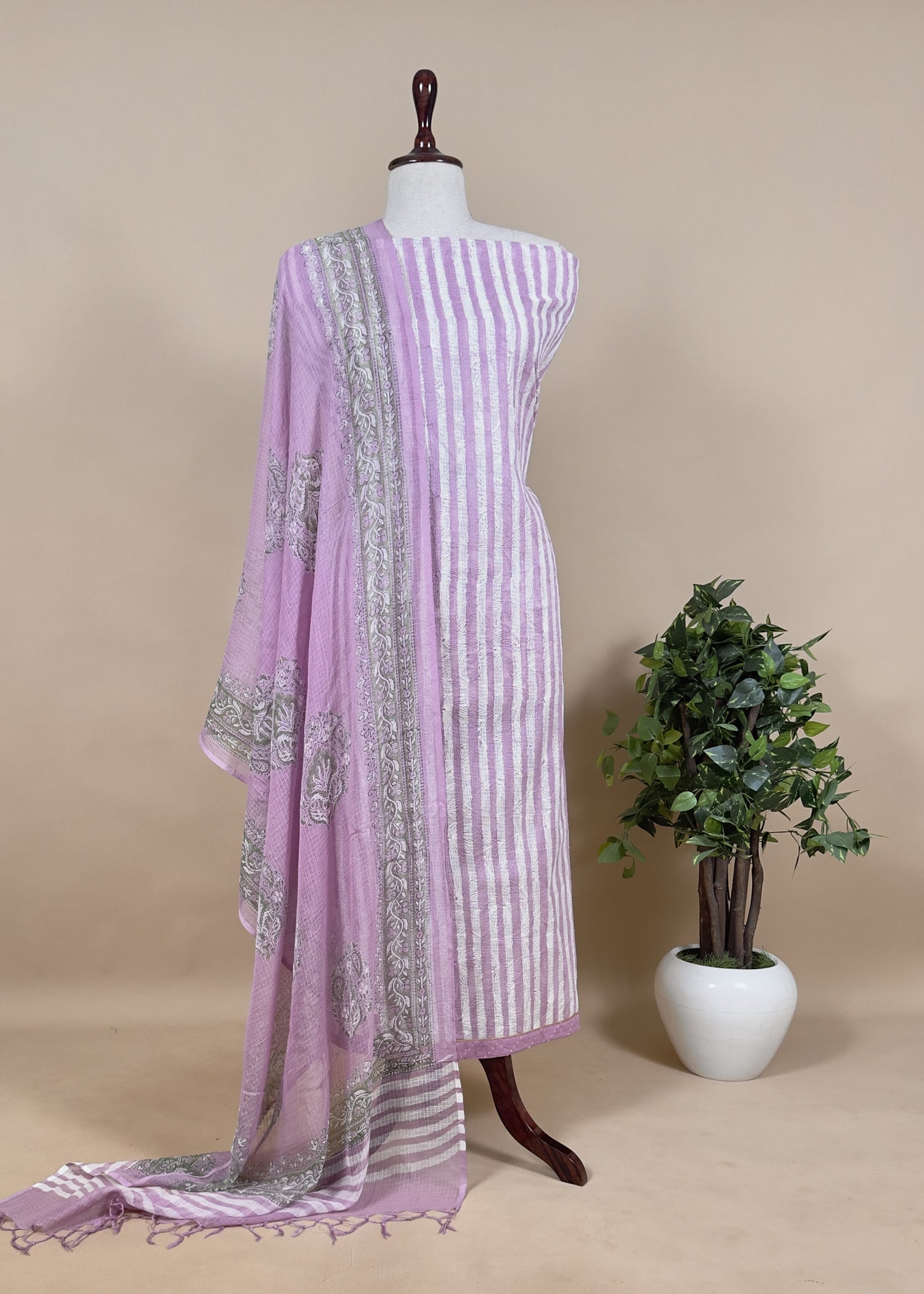 Lavender Embroidered Kota Unstitched Suit With Kota Dupatta
