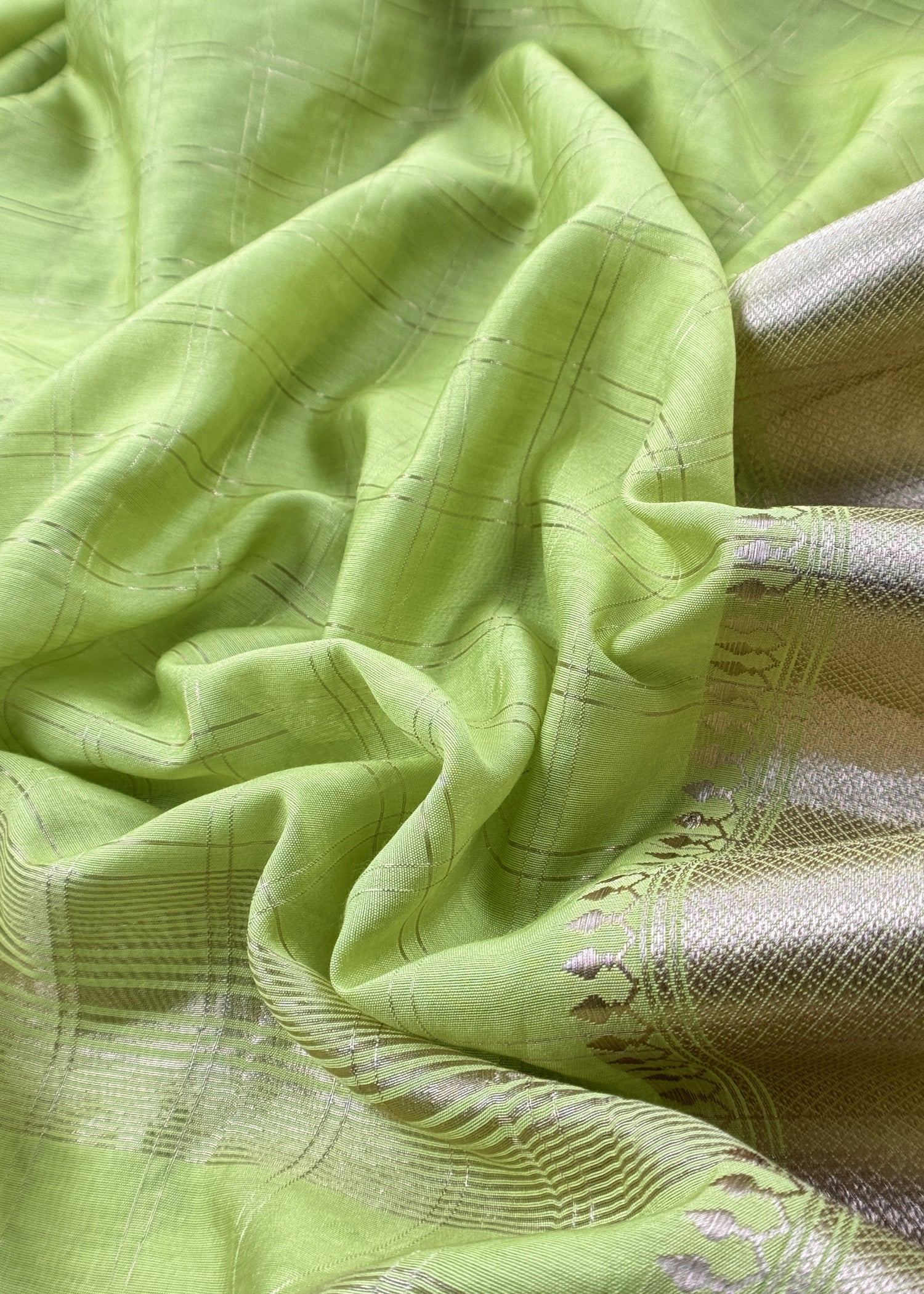 Shop gorgeous Banarasi suit in Chanderi silk kurta with check gold weaving paired with dupatta adorned with elegant Banarasi Zari border. The unstitched three piece suit fabric comes with matching cotton silk lowers.