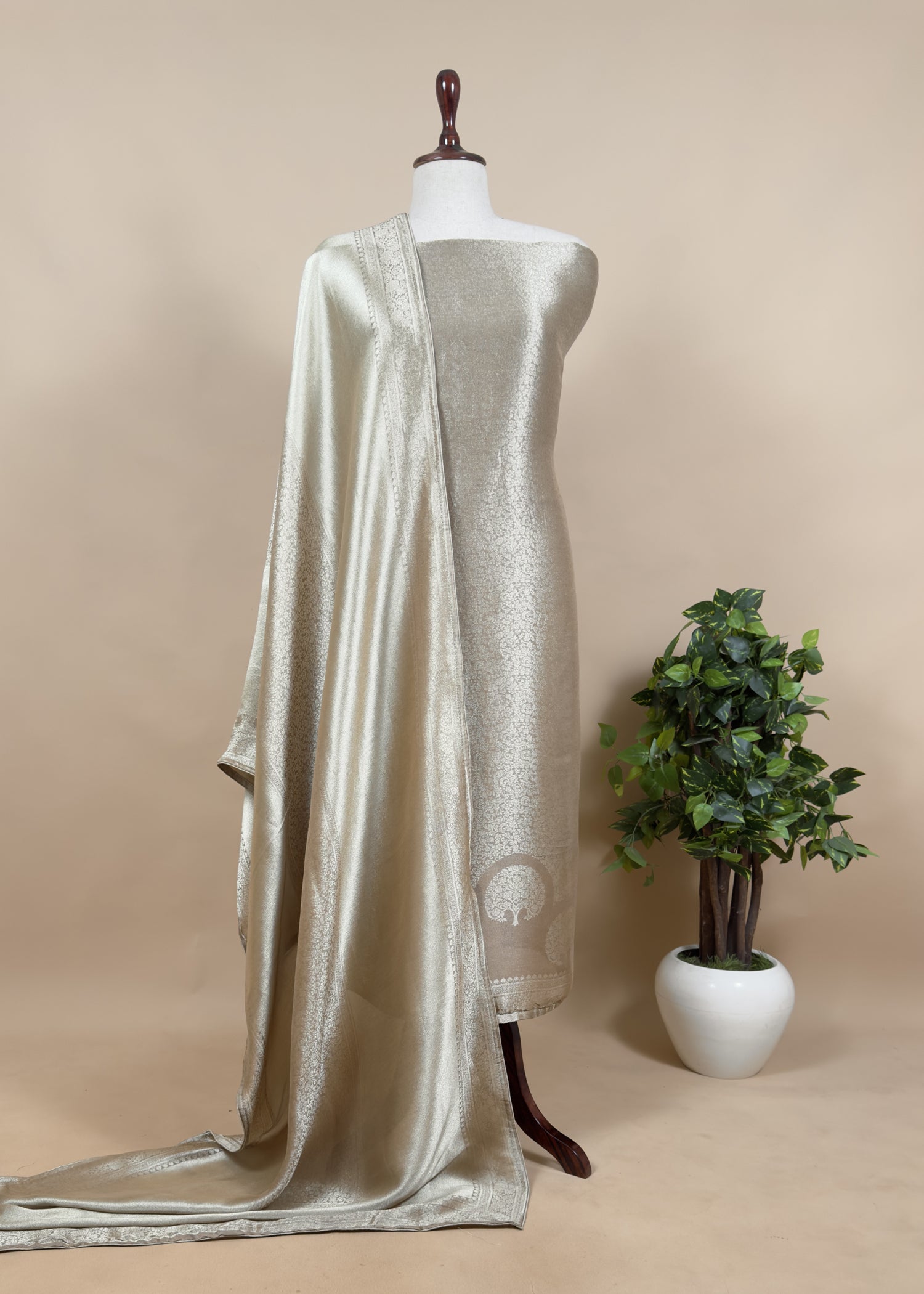 Perfect for creating timeless and luxurious ethnic ensembles, this tissue brocade silk suit is an excellent choice for wedding celebrations, bridal trousseaus, and special occasion gifting.