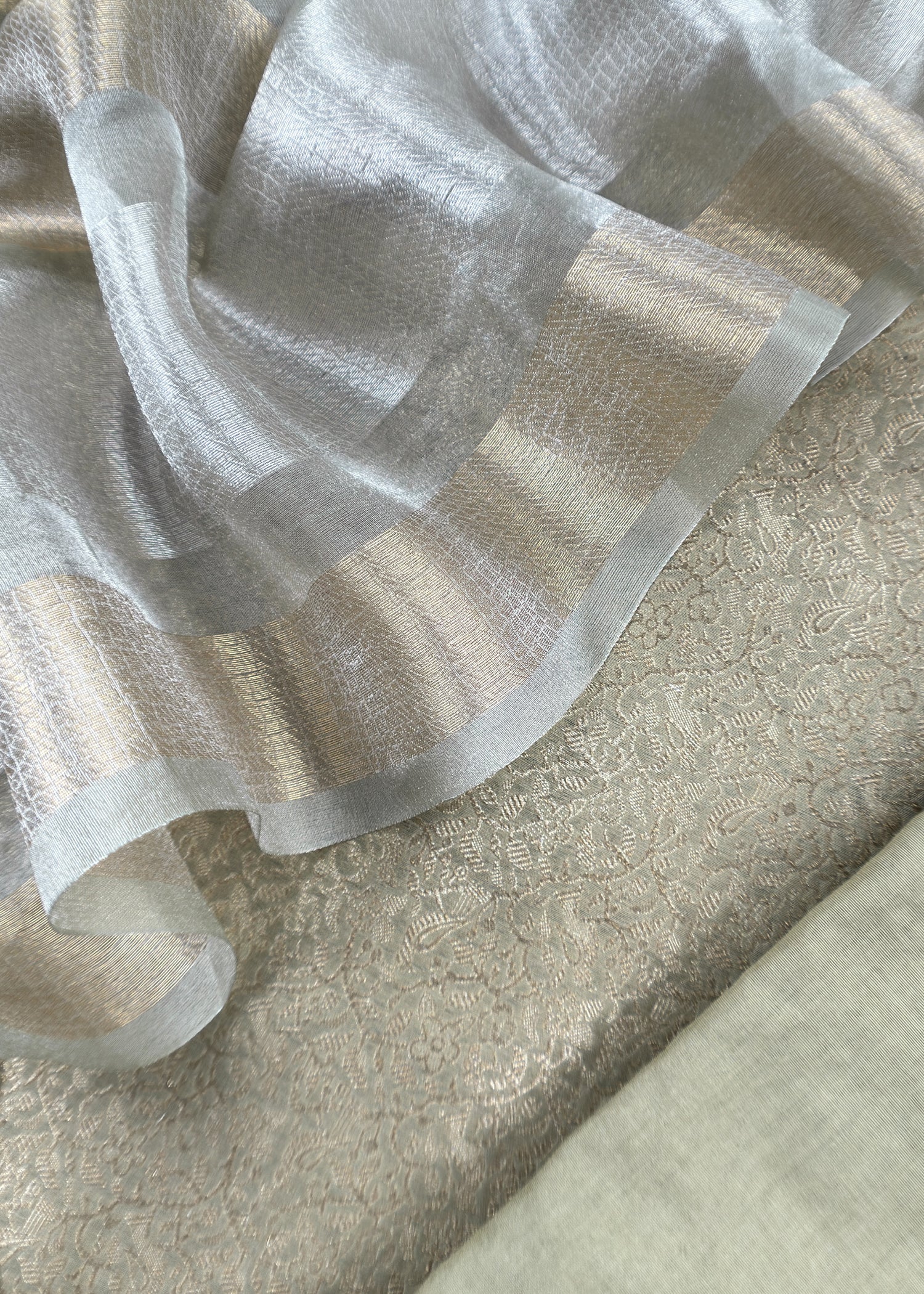Light Green Designer Pure Brocade Silk kurta And Tissue Silk Dupatta