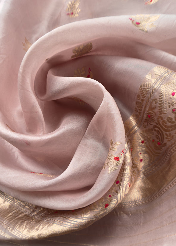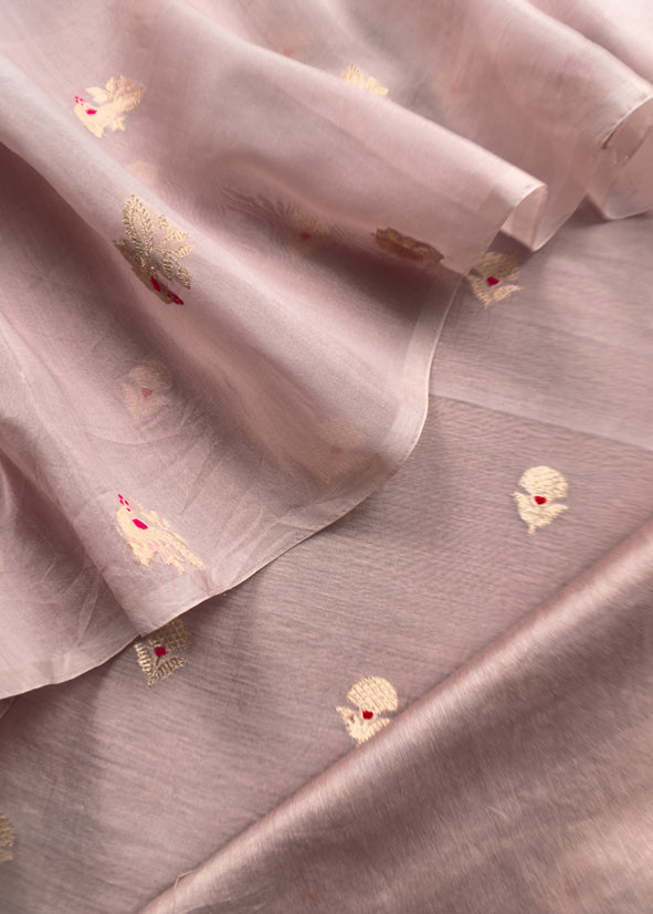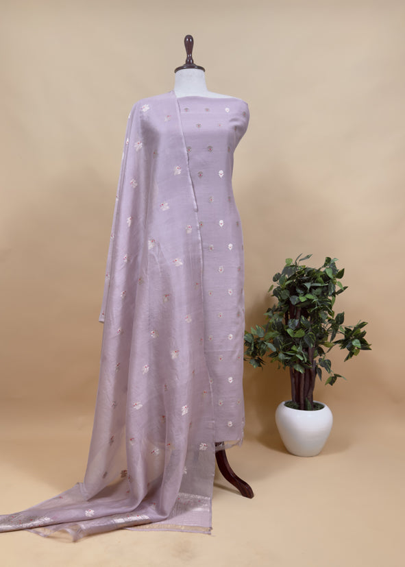 Light Mauve Pura Kora Silk Suit In Kadwa Weaving