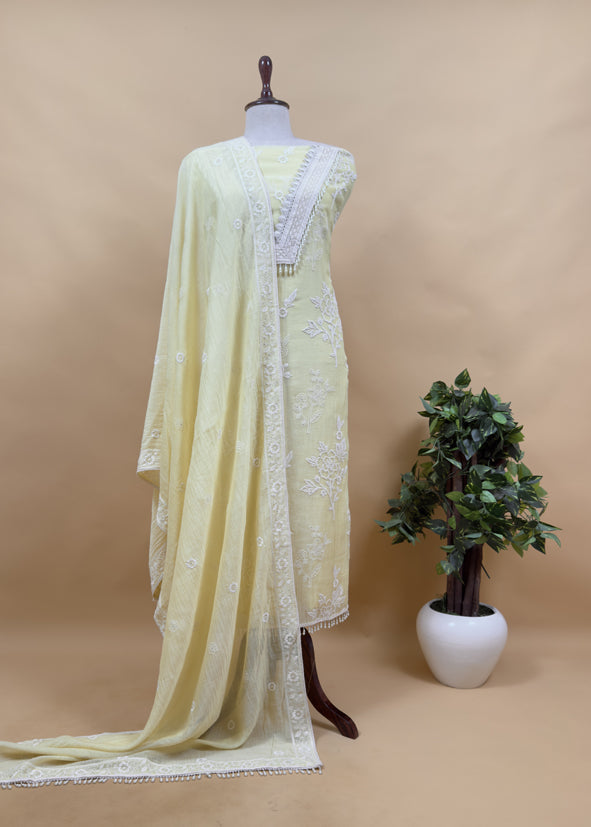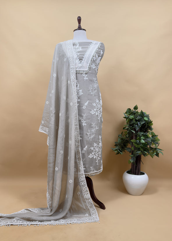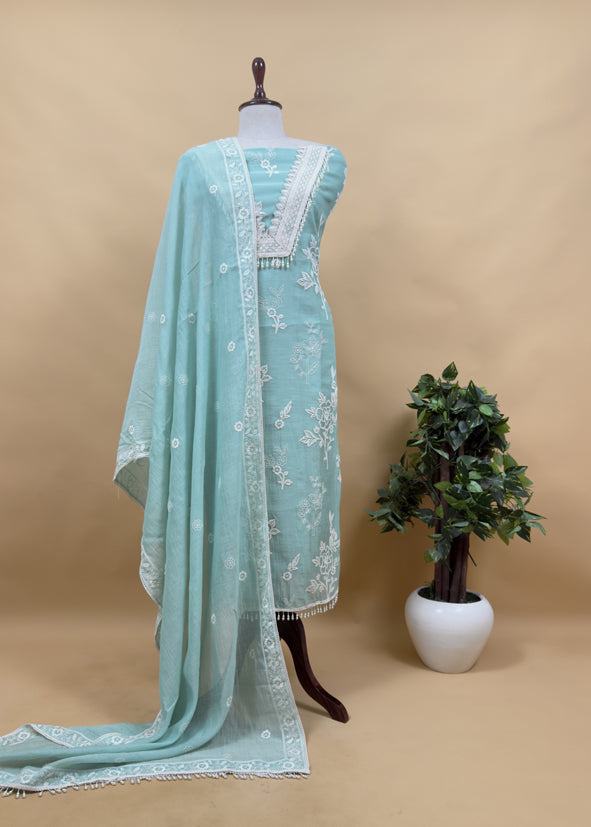 Light Pastel Blue Pure Mulmul Suit Fabric With Resham Embroidery And Pearls