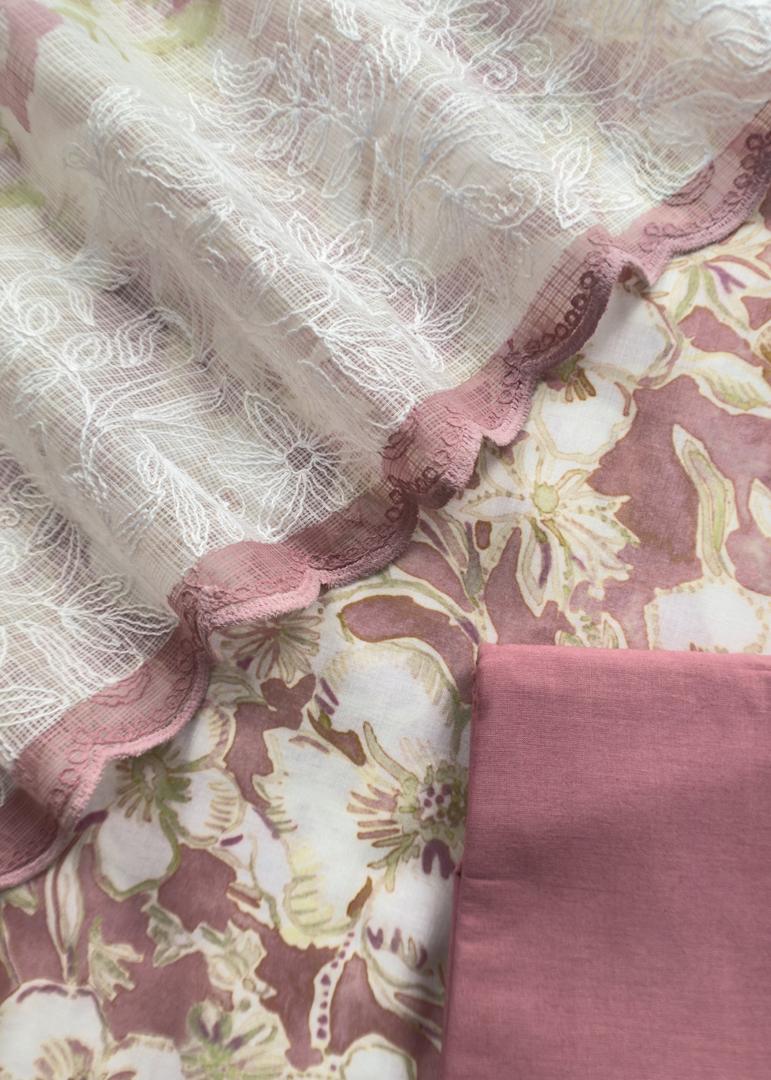 Light Pink Cotton Suit With Kota Embroidered Dupatta