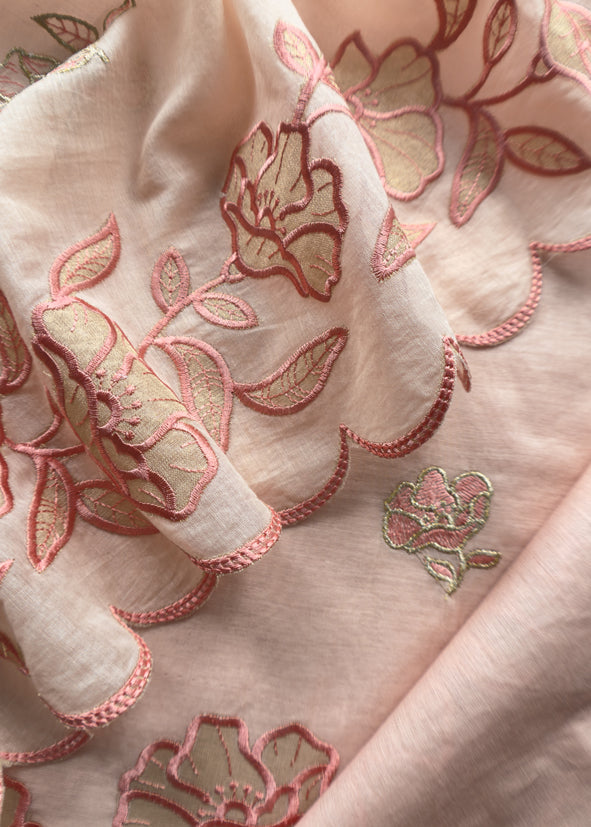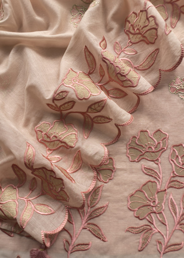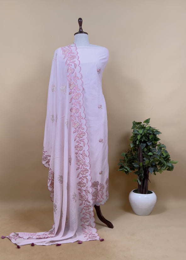 Light Pink Mul Cotton Suit With Lotus Appliqué Work