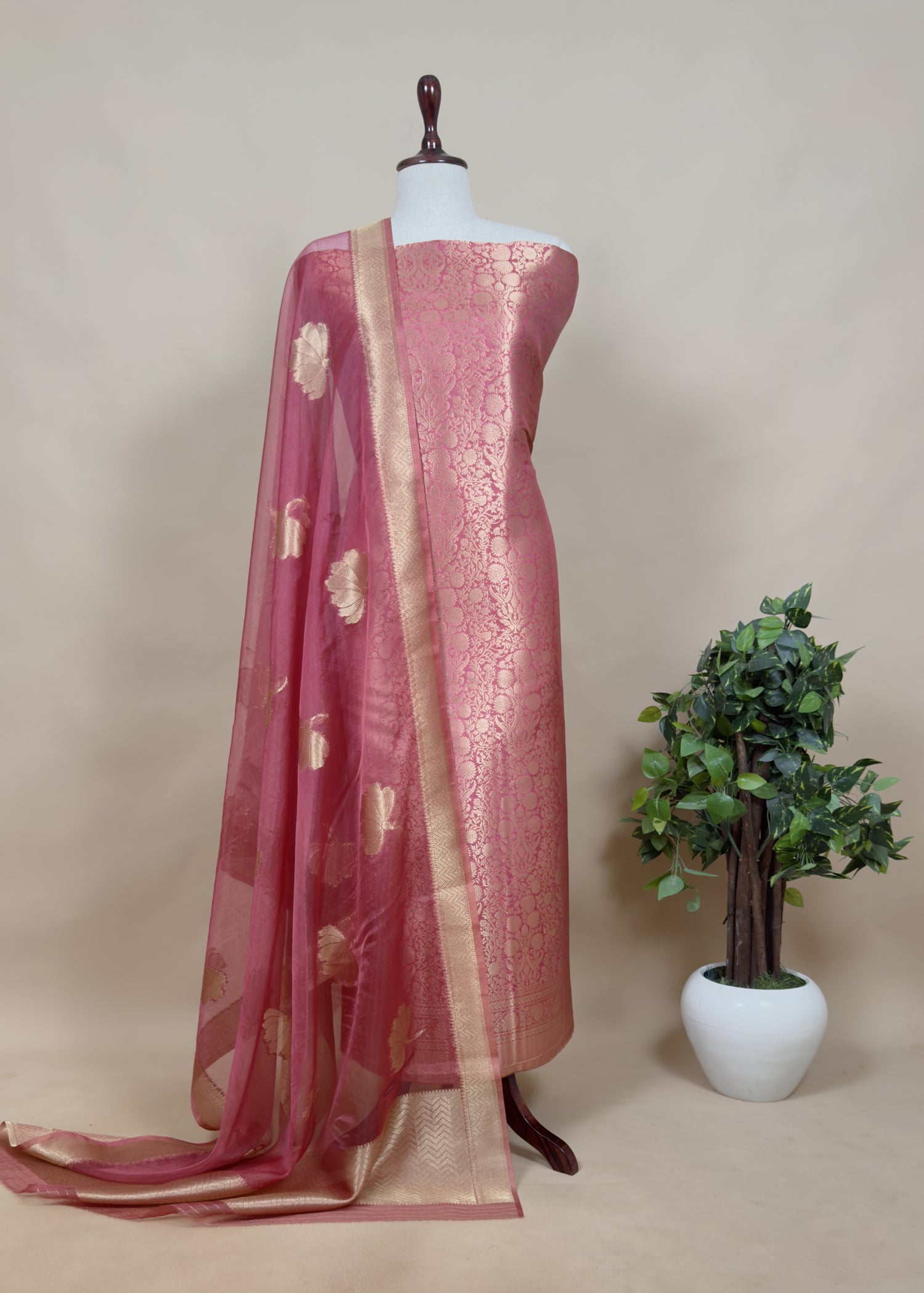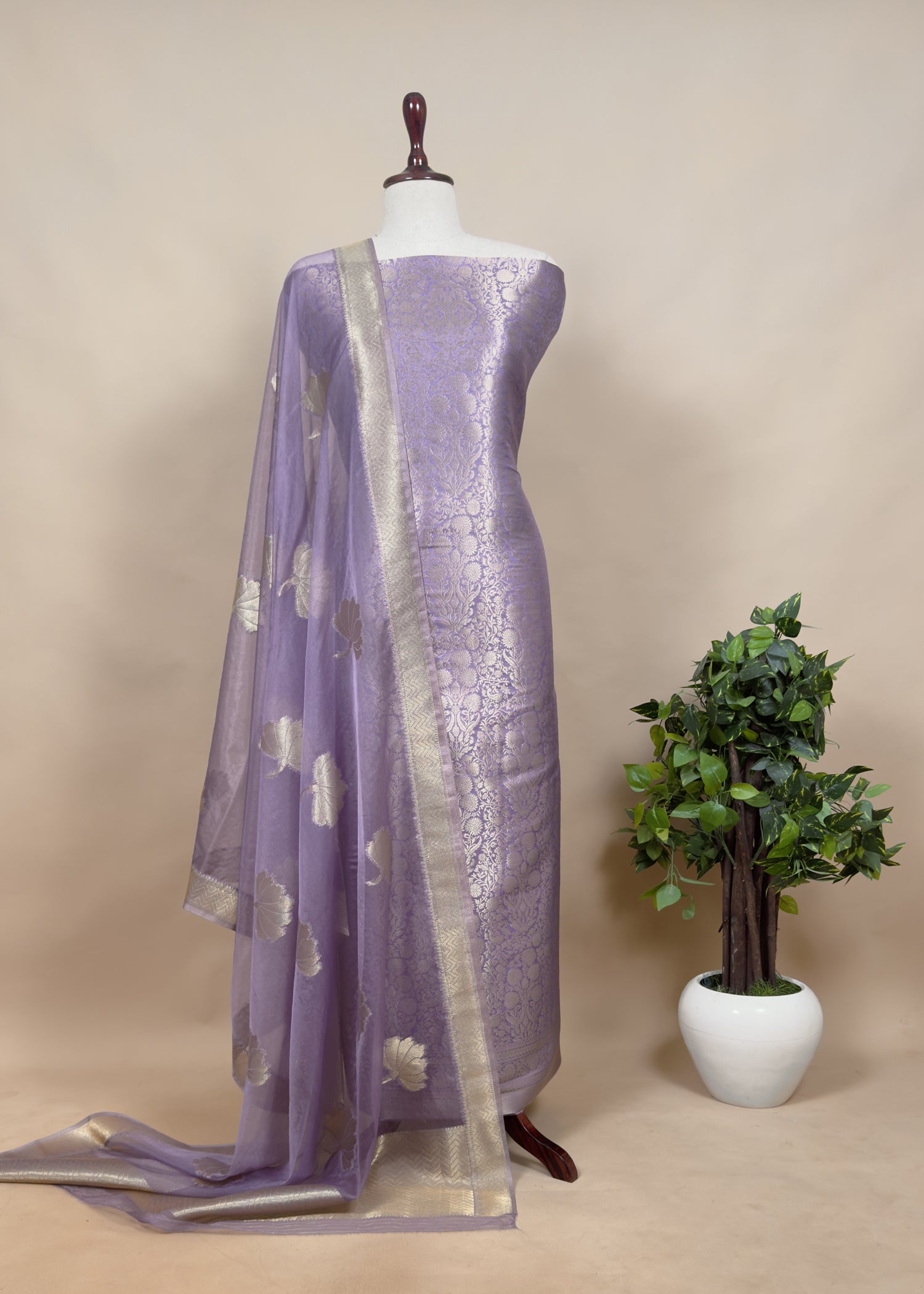 Light Purple Banarasi Silk Brocade Suit With Organza Dupatta