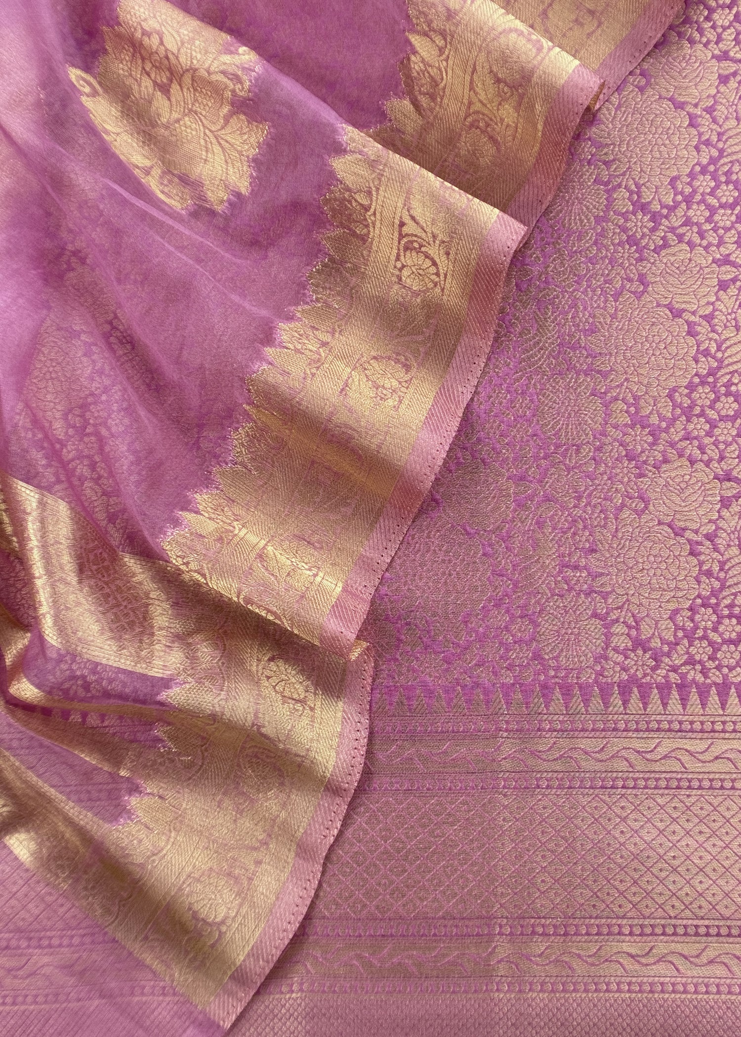 Light Purple Banarasi Silk Brocade Suit With Organza Dupatta