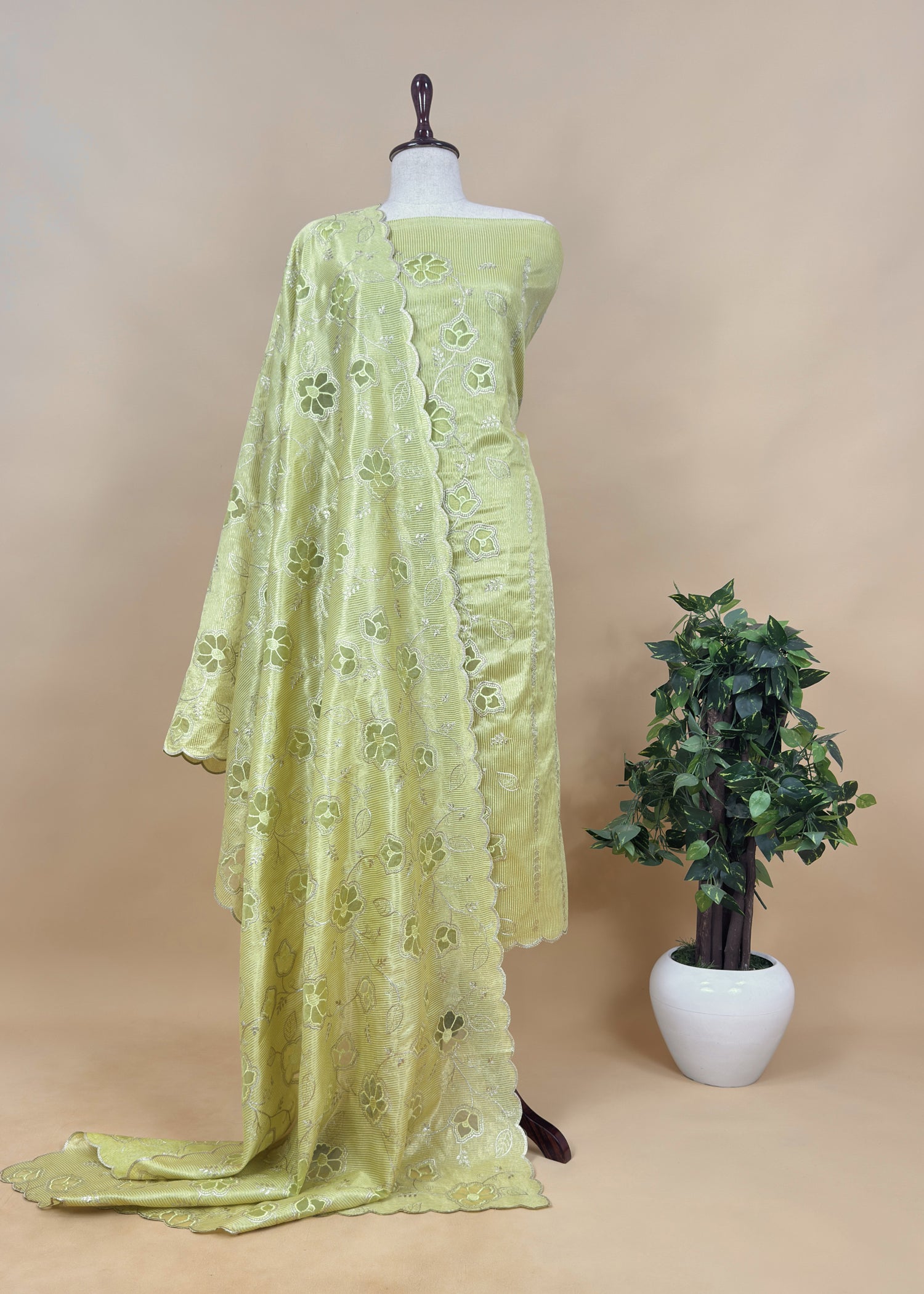 Light Purple Cutwork Tissue Silk Suit With Dupatta