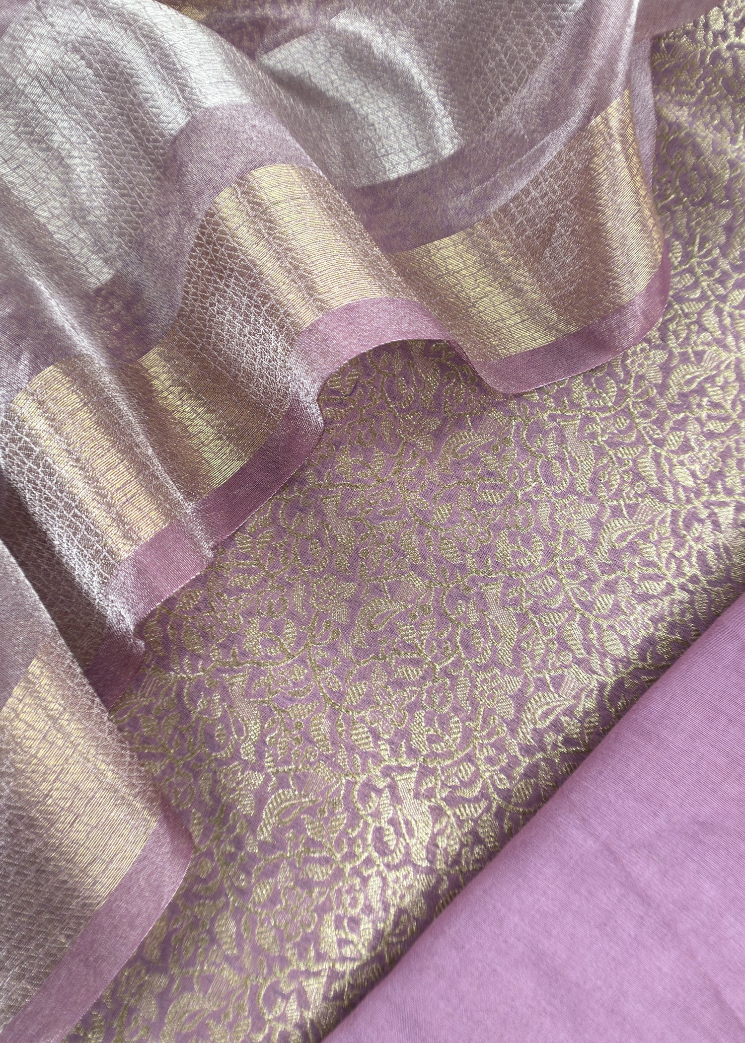Light Purple Designer Pure Brocade Silk kurta And Tissue Silk Dupatta
