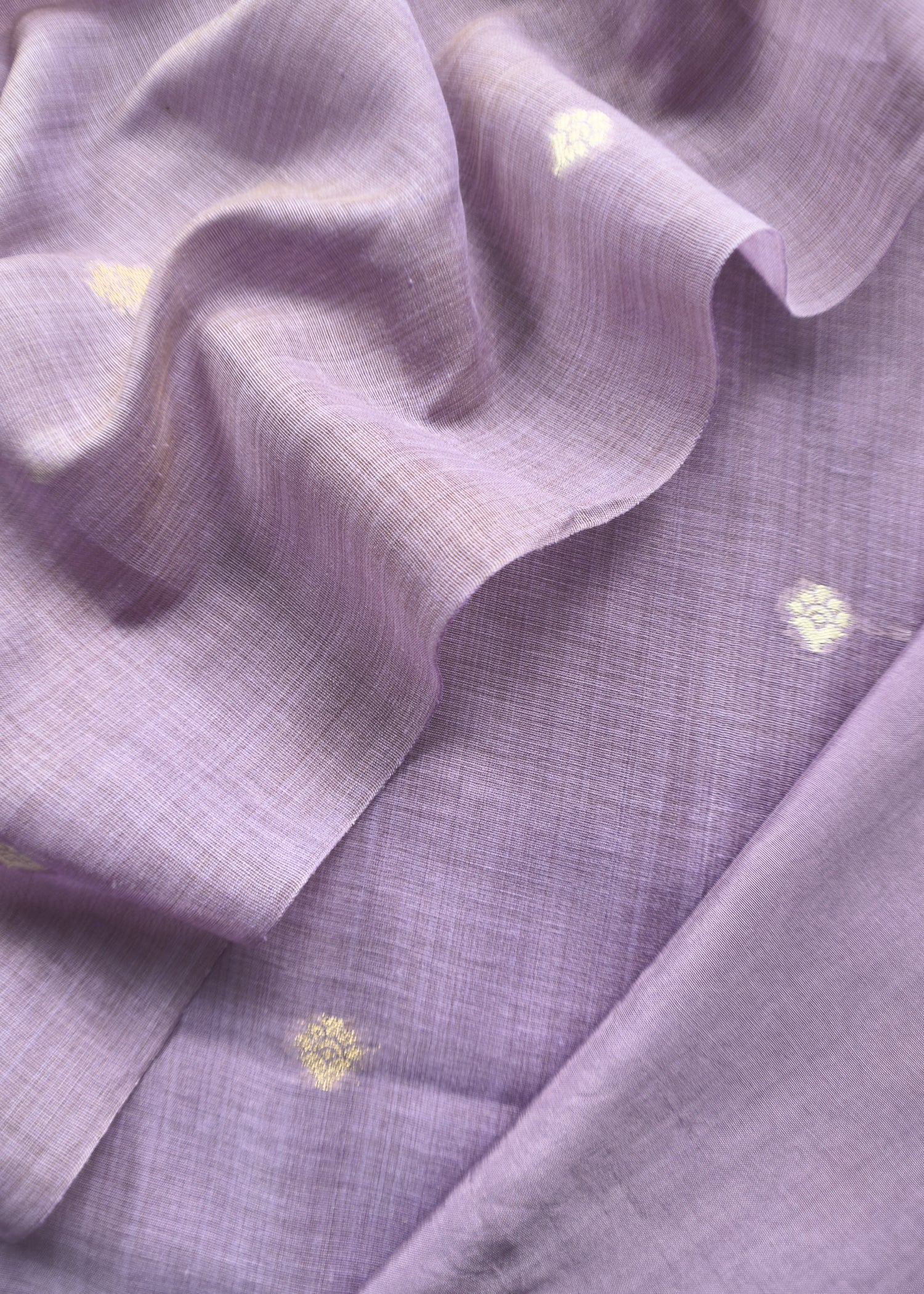 Lilac Jamdani Weaved Suit Fabric In Linen Chanderi