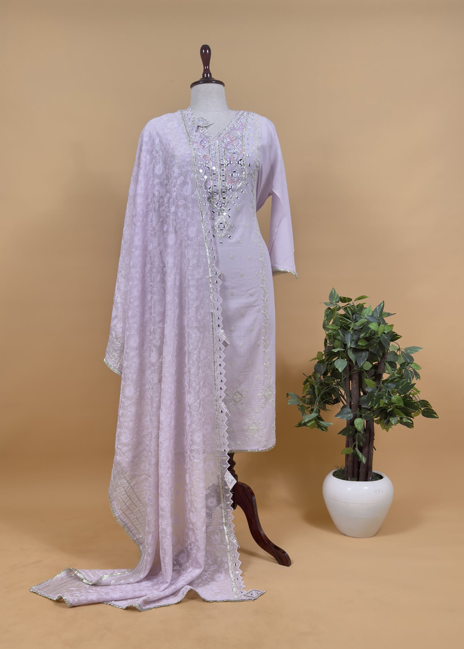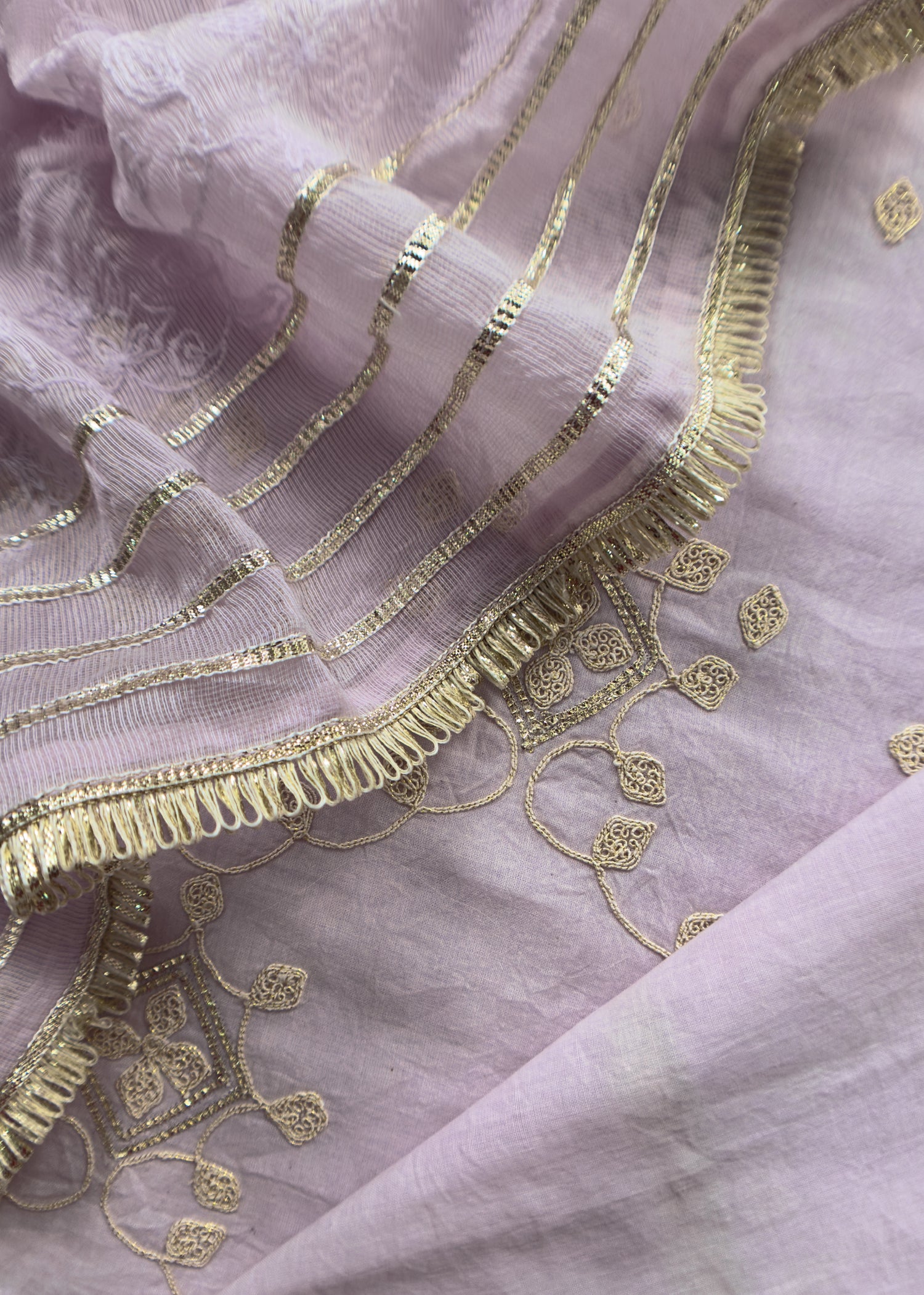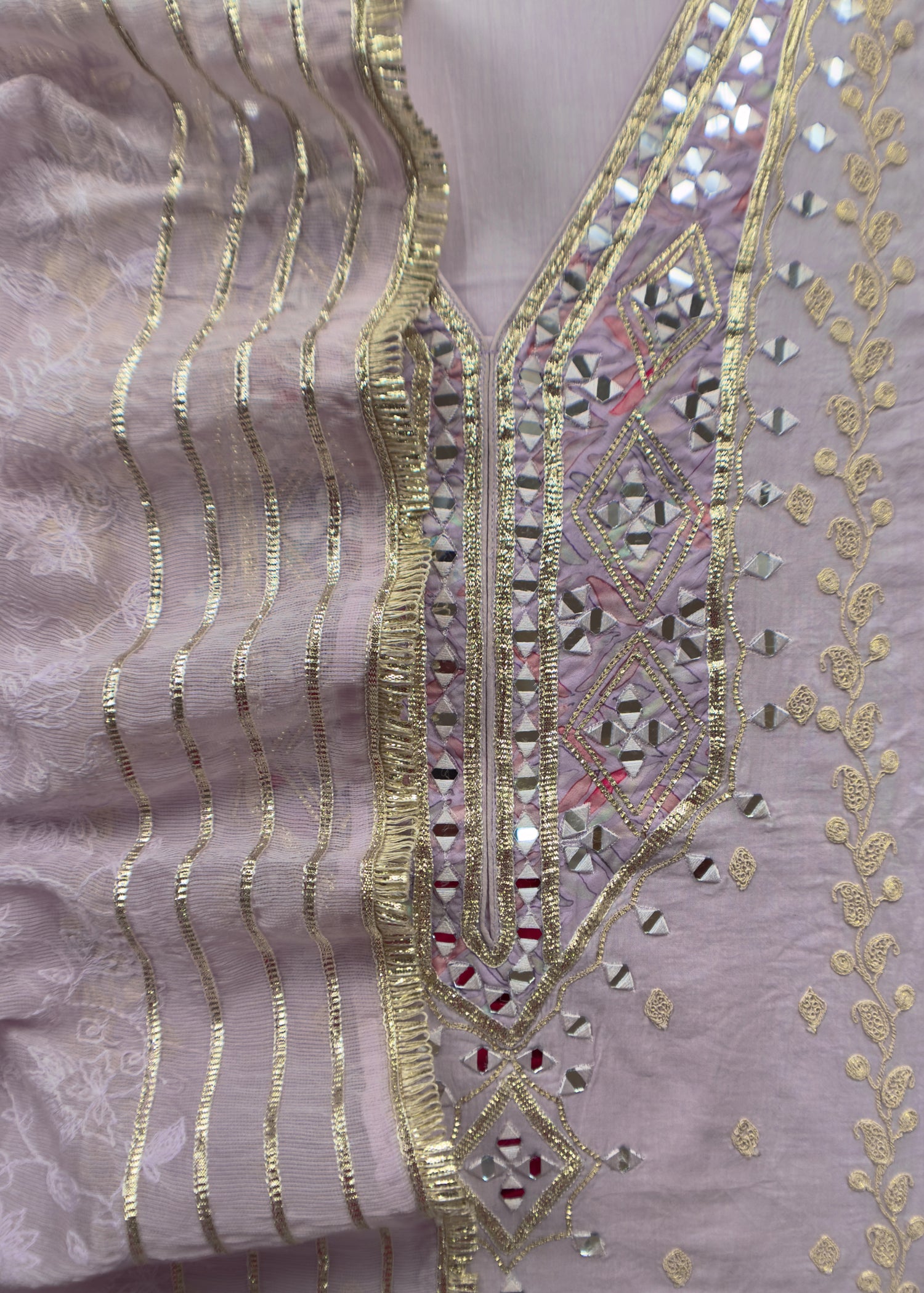 Lilac Pure Cotton Suit With Mirrors, Gota Patti And Dori Embroidery