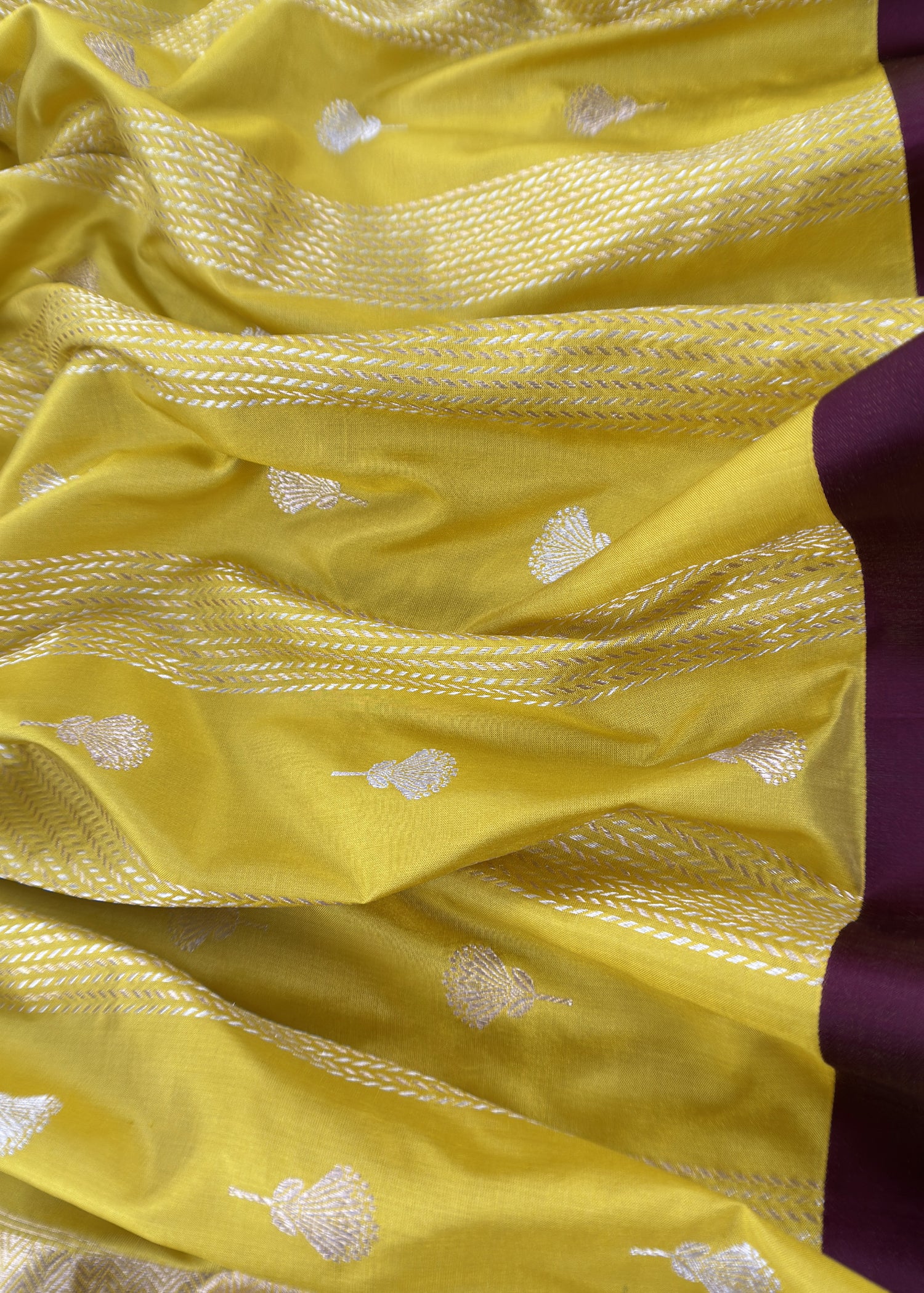 Pure katan silk kurta and dupatta adorned with gorgeous kadwa woven magnolia flowers, all over kadwa panel borders with tassels having contrast chocolate brown detailings paired with matching pure katan silk lowers.