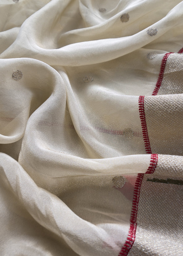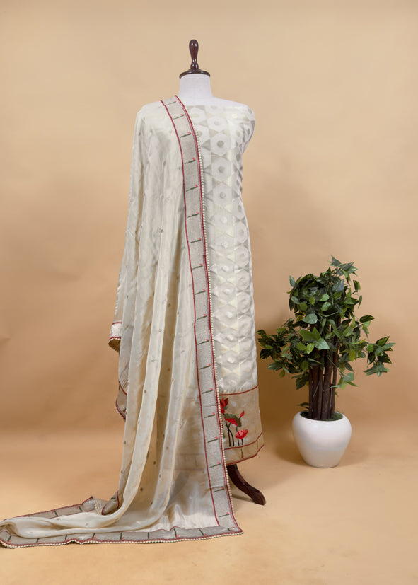 Luxe Cheeku Beige Handloom Self Tissue Silk Suit Fabric With Paithani Weaving