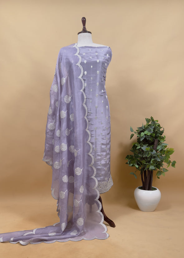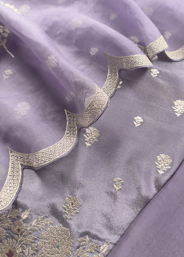 Luxe English Blue Handloom Silk Suit With Kora Silk Dupatta Adorned With Gold Pitta Work And Resham Embroidery