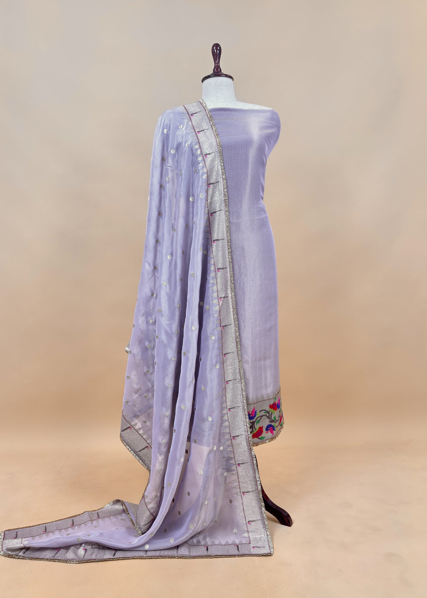 Luxe la Handloom Self Tissue Silk Suit Fabric With Paithani Weaving And Jhalar Gota Laces