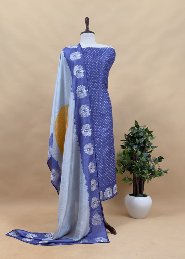 Luxe Lime Green Desi Tussar Bandhani Suit With Resham Lotus Embroidery