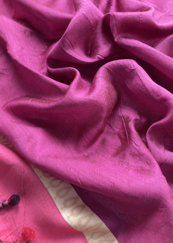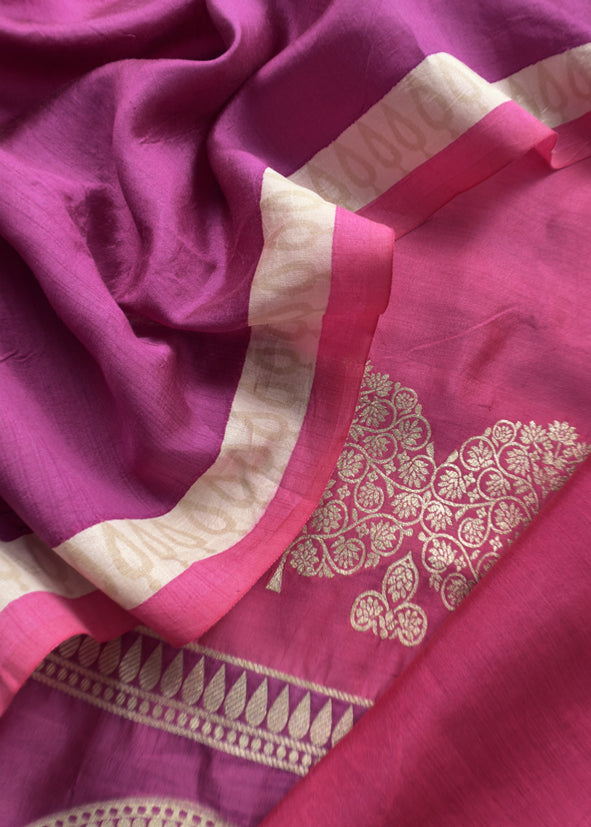 Luxe Pink And Purple Designer Handwoven Silk Suit Fabric With Zari Weaving