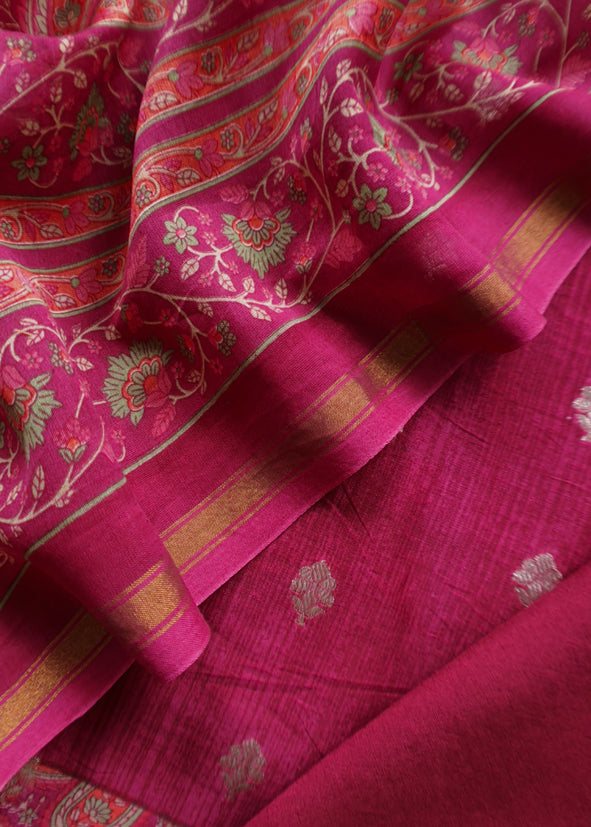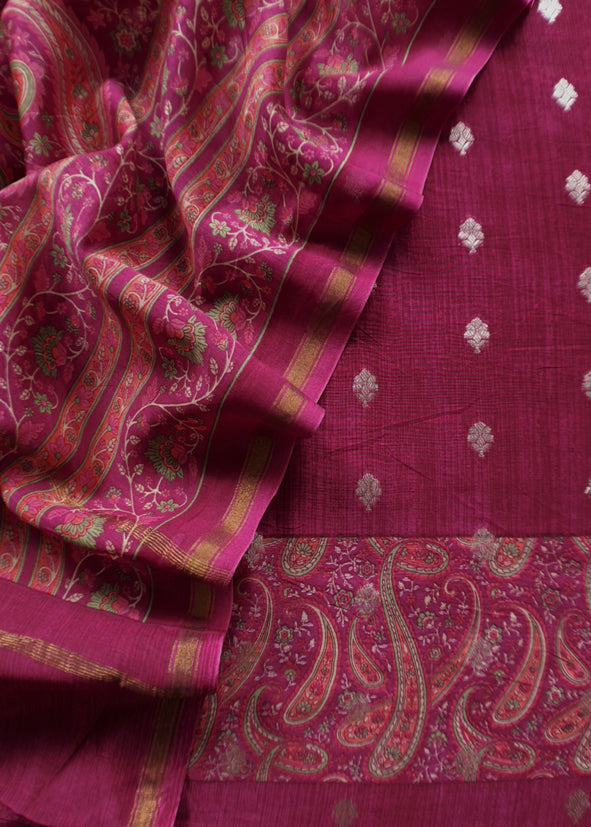 Magenta Pink Maheshwari Silk Suit With Banarasi Bootis