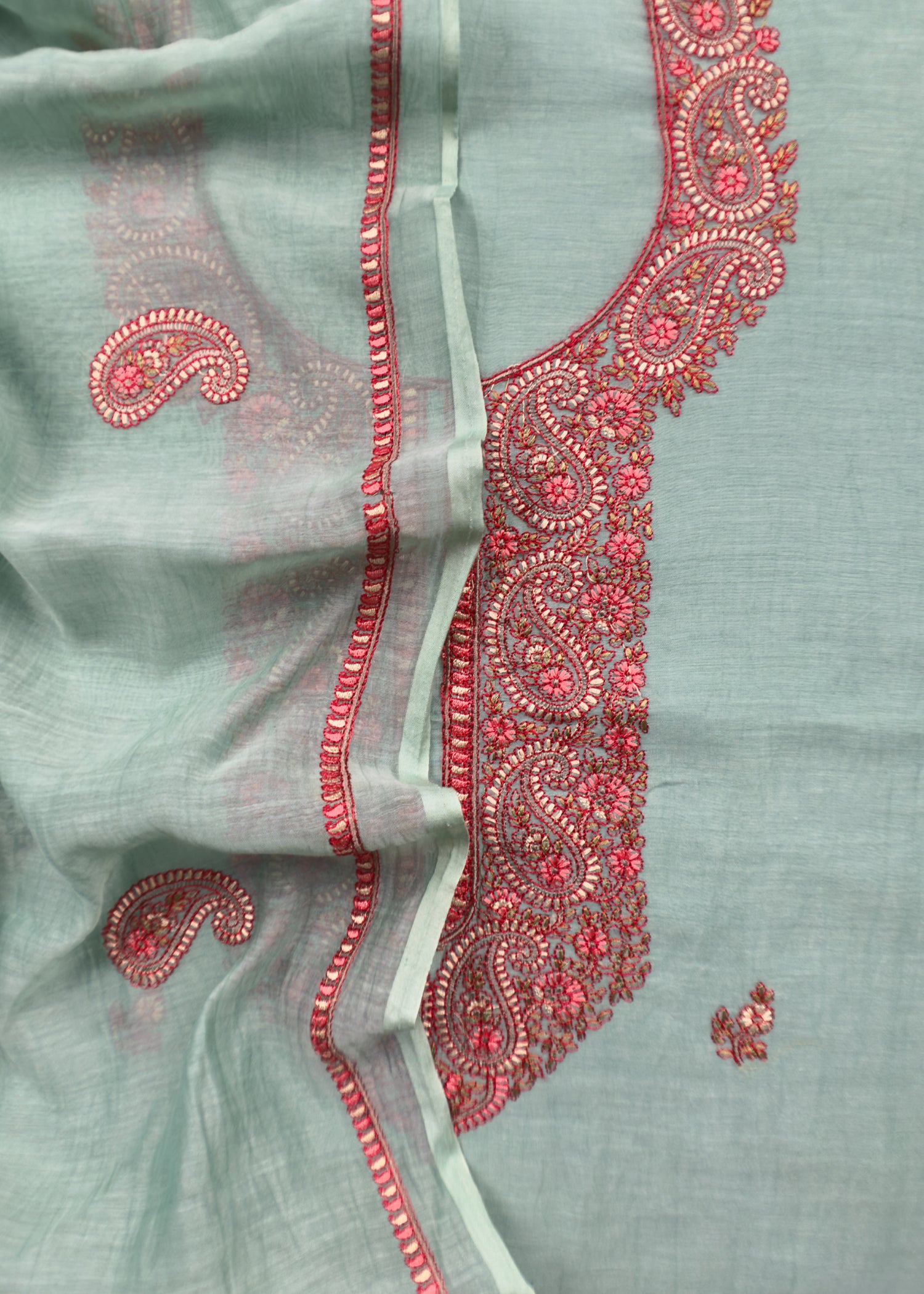 Sea Blue Summer Special Mul Chanderi Suit With Kashmiri Embroidery