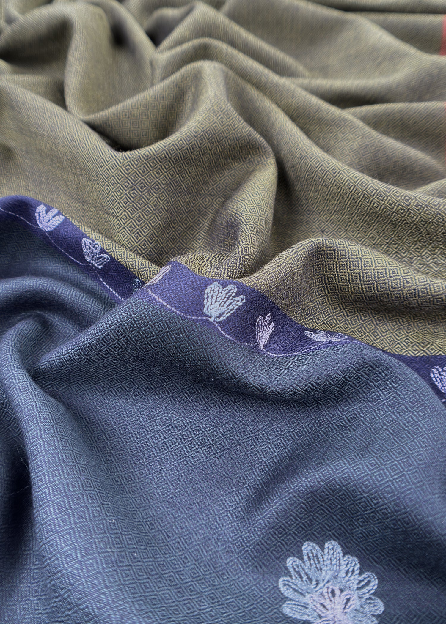 Mehndi Green And Charcoal Grey Pure Merino Wool With Beautiful Aari Embroidery