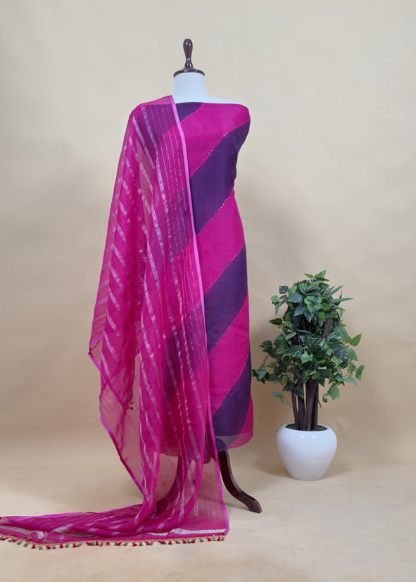 Modern Elegance 2025 Handloom Organza Silk Suit Fabric with Gold embellishments