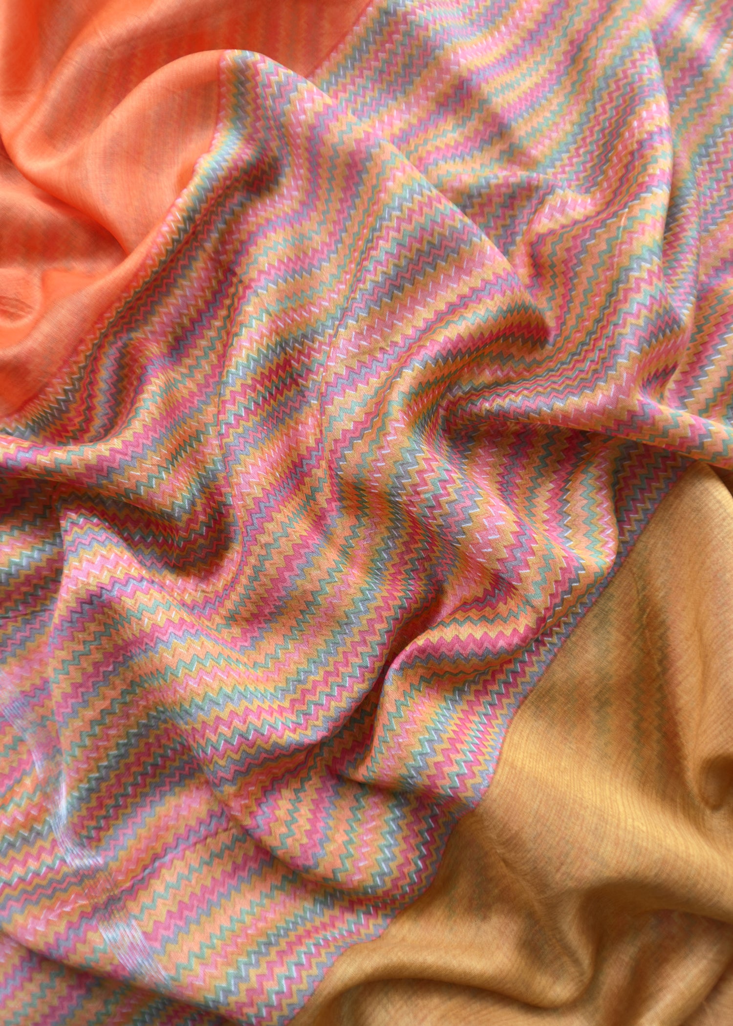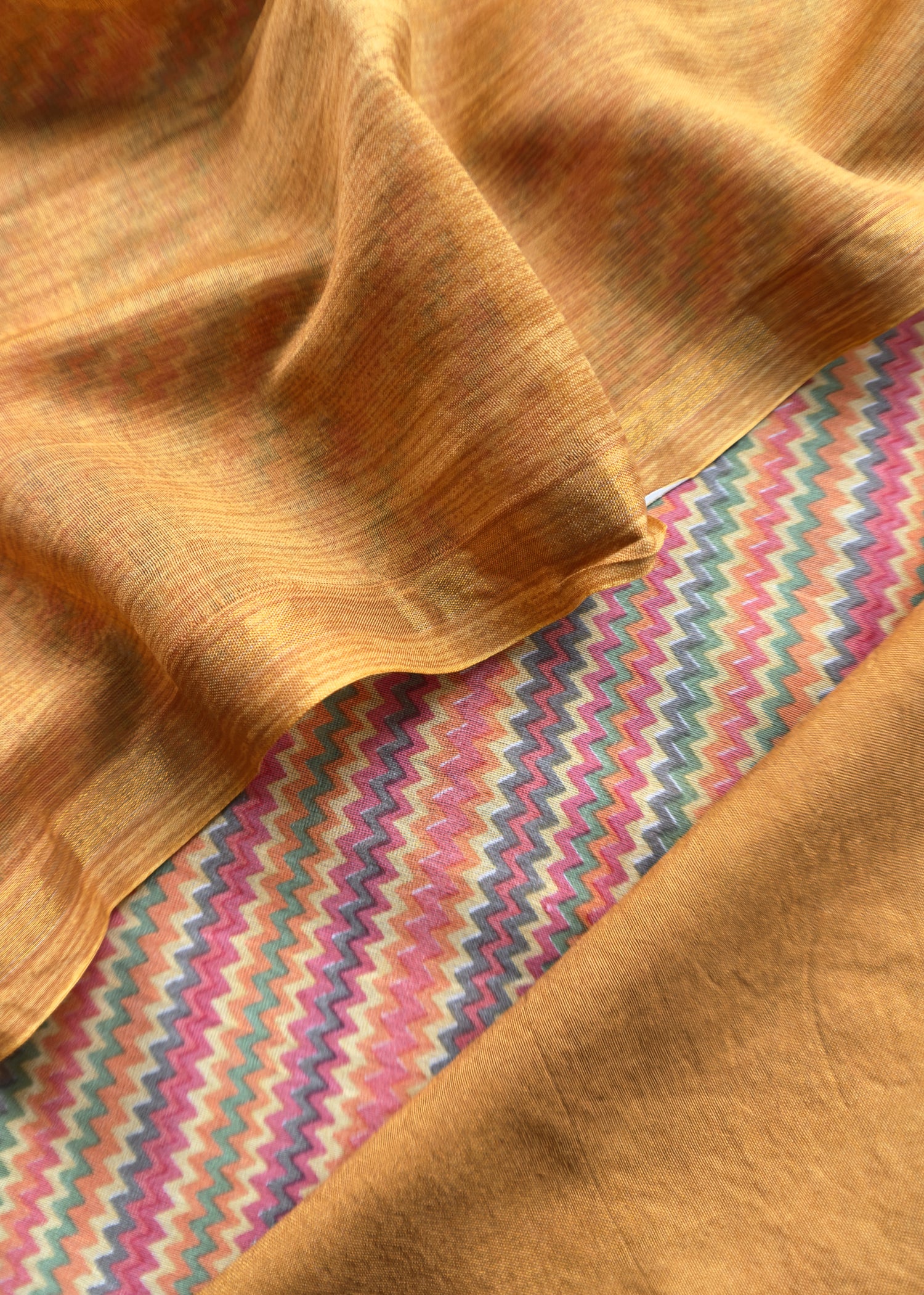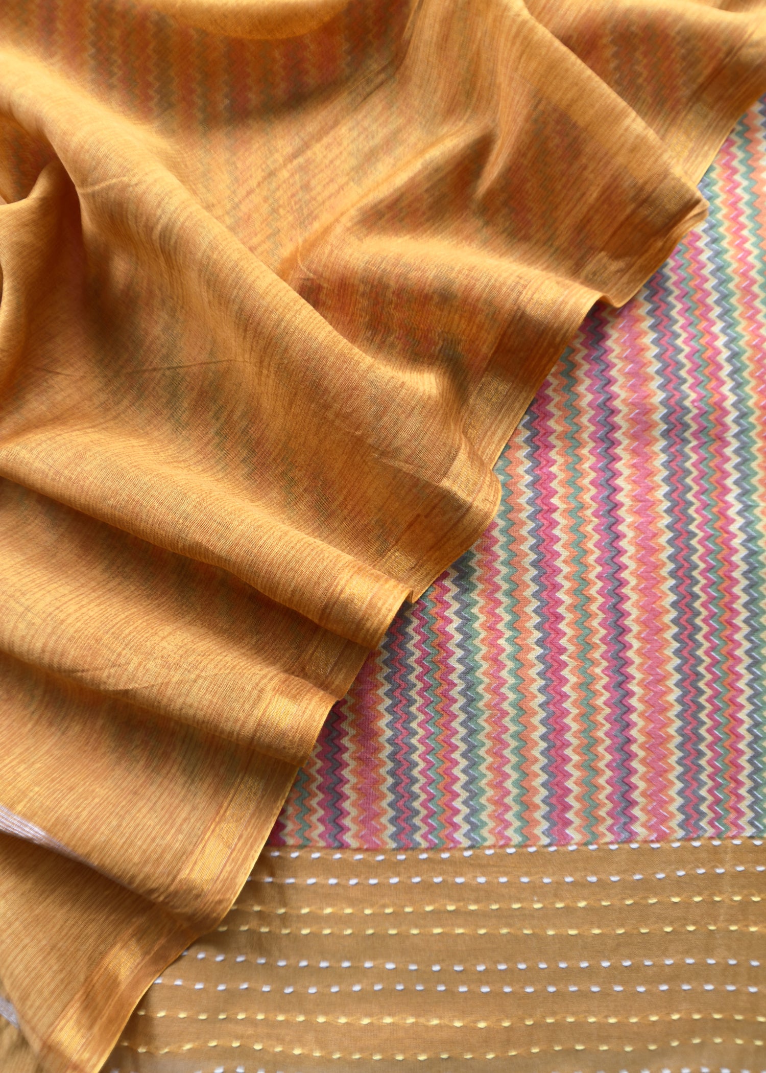 Mustard Pure Maheshwari Silk Suit with Kantha Handwork