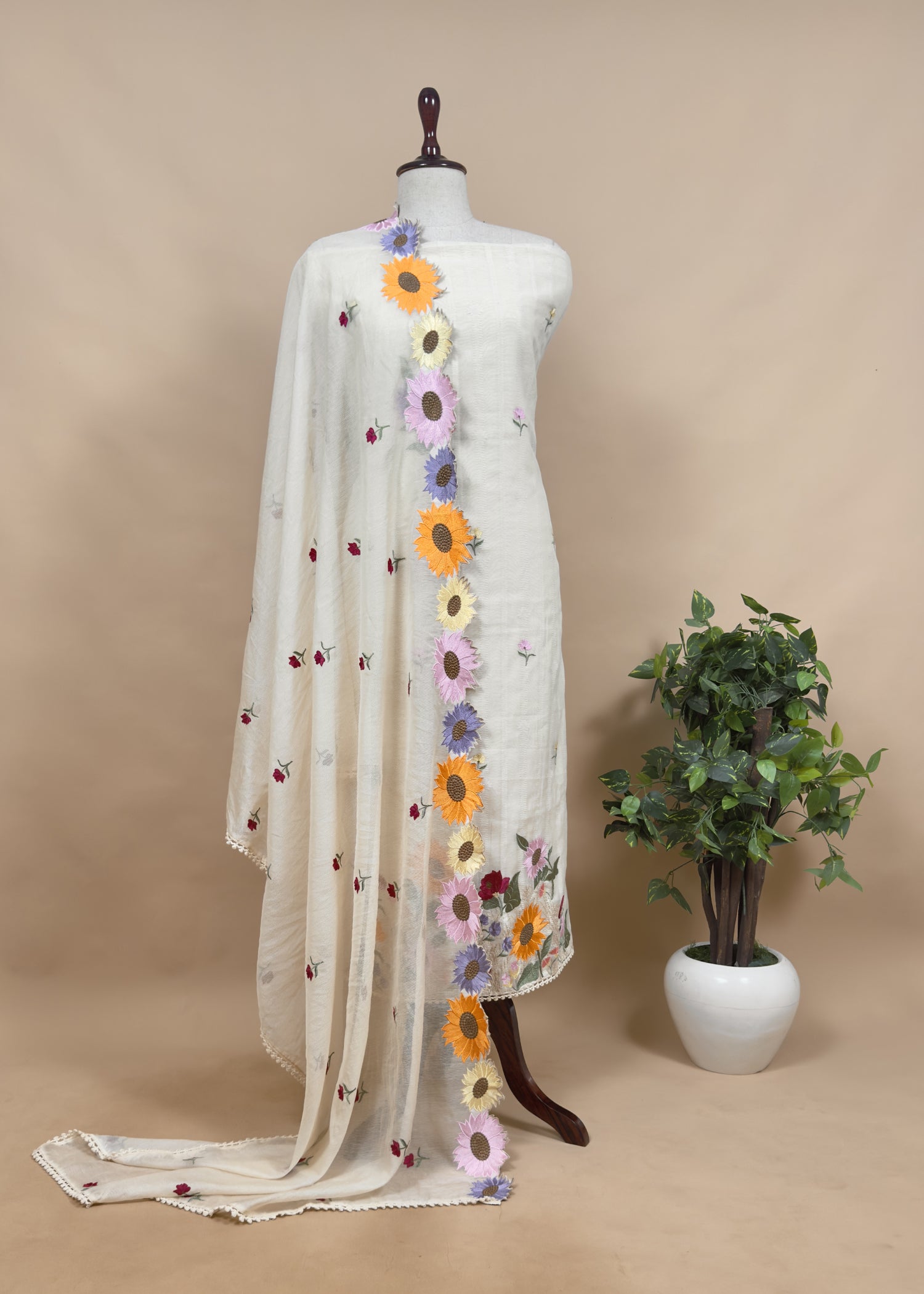 Off-White Embroidered Cotton Suit And Kota Dupatta With Patchwork