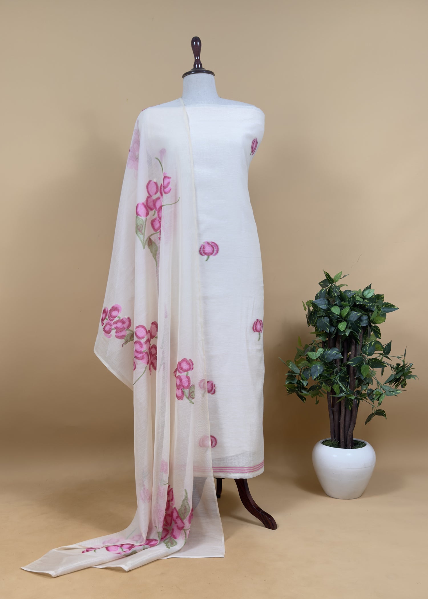 Get premium-quality Jamdani linen Chanderi suits at the best price.