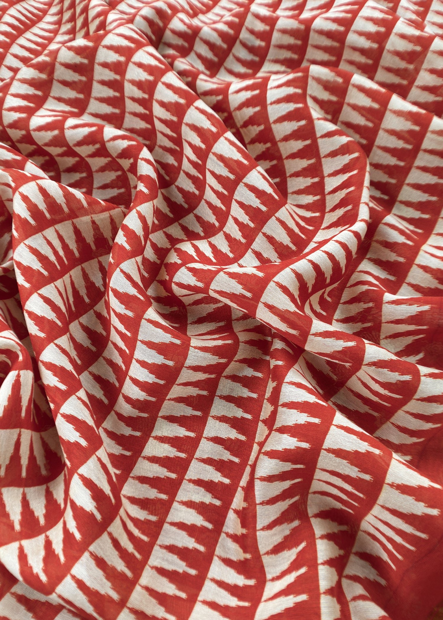 Orange Block Print Handloom Maheshwari Silk Suit Fabric