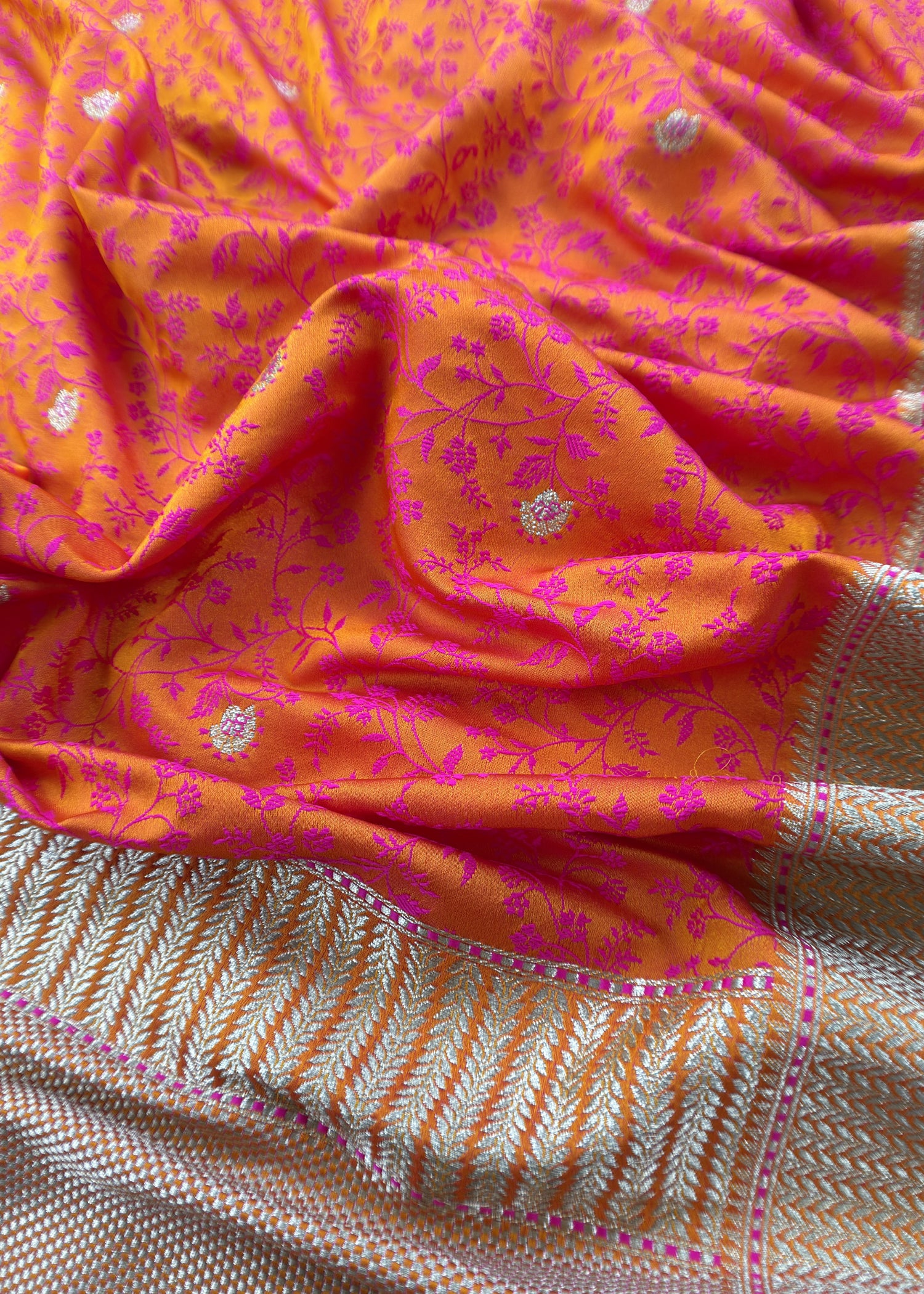 Orange Dhup Chaav Pure Katan Silk Suit Fabric With Meenakari Zari Weaving
