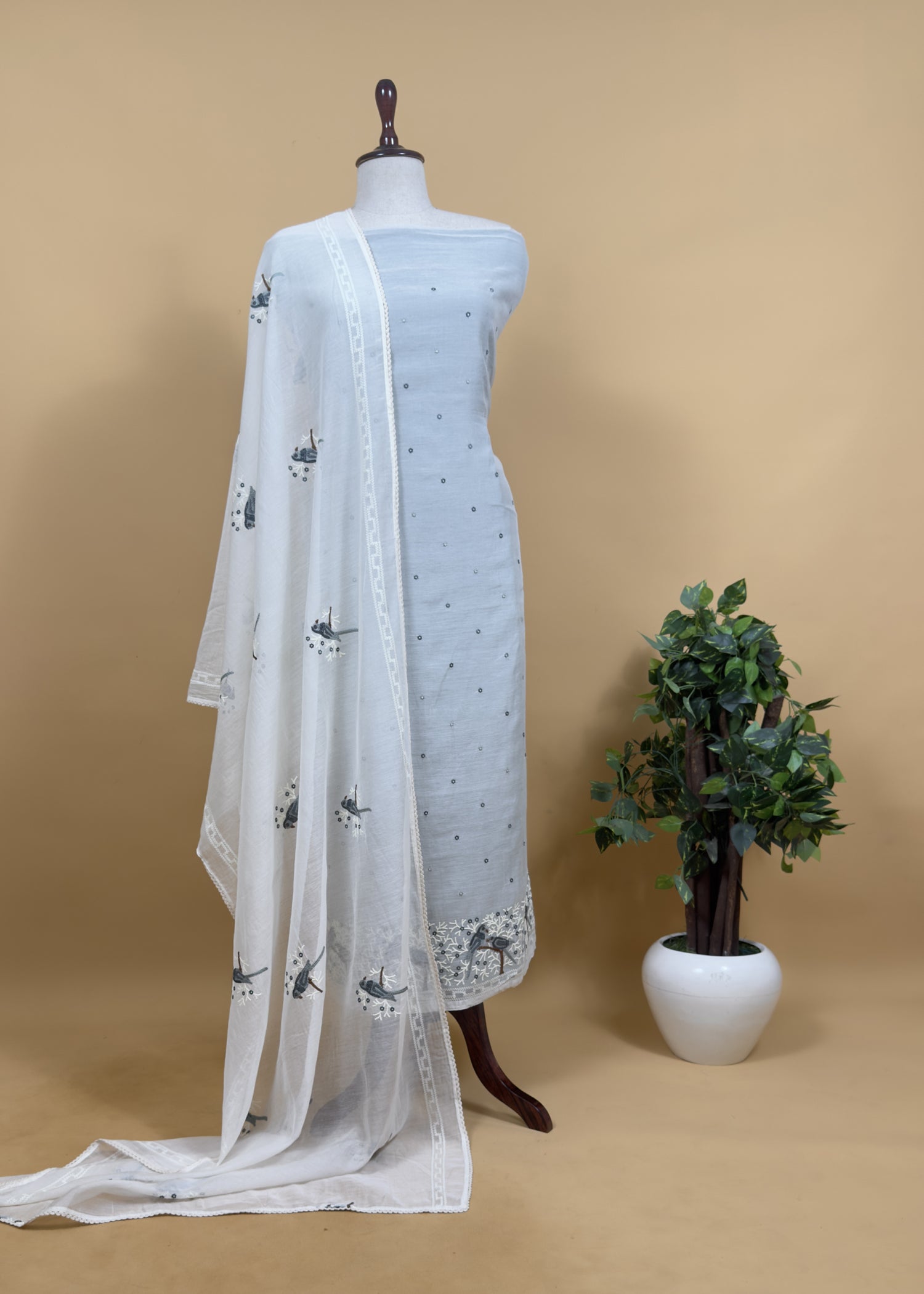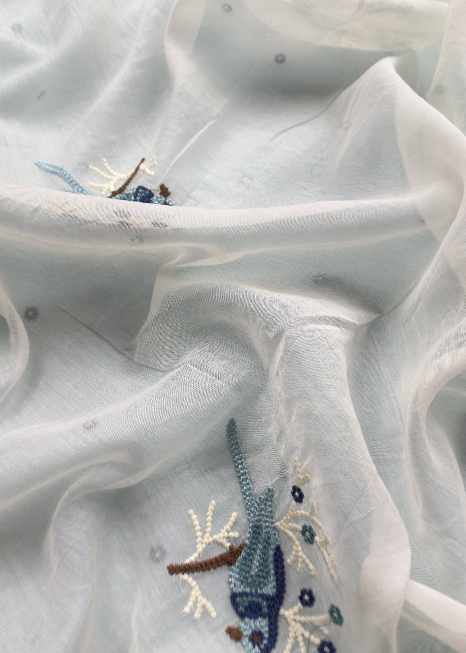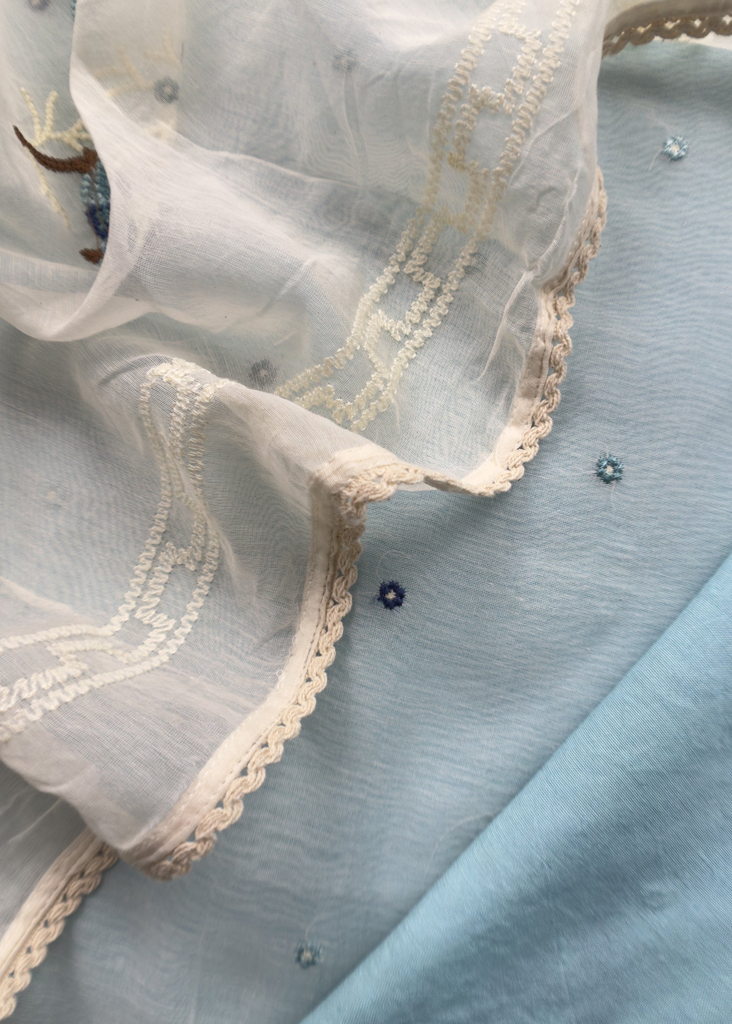 Pastel Blue Pure Mul Chanderi Suit with Chidiya French Thread Embroidery