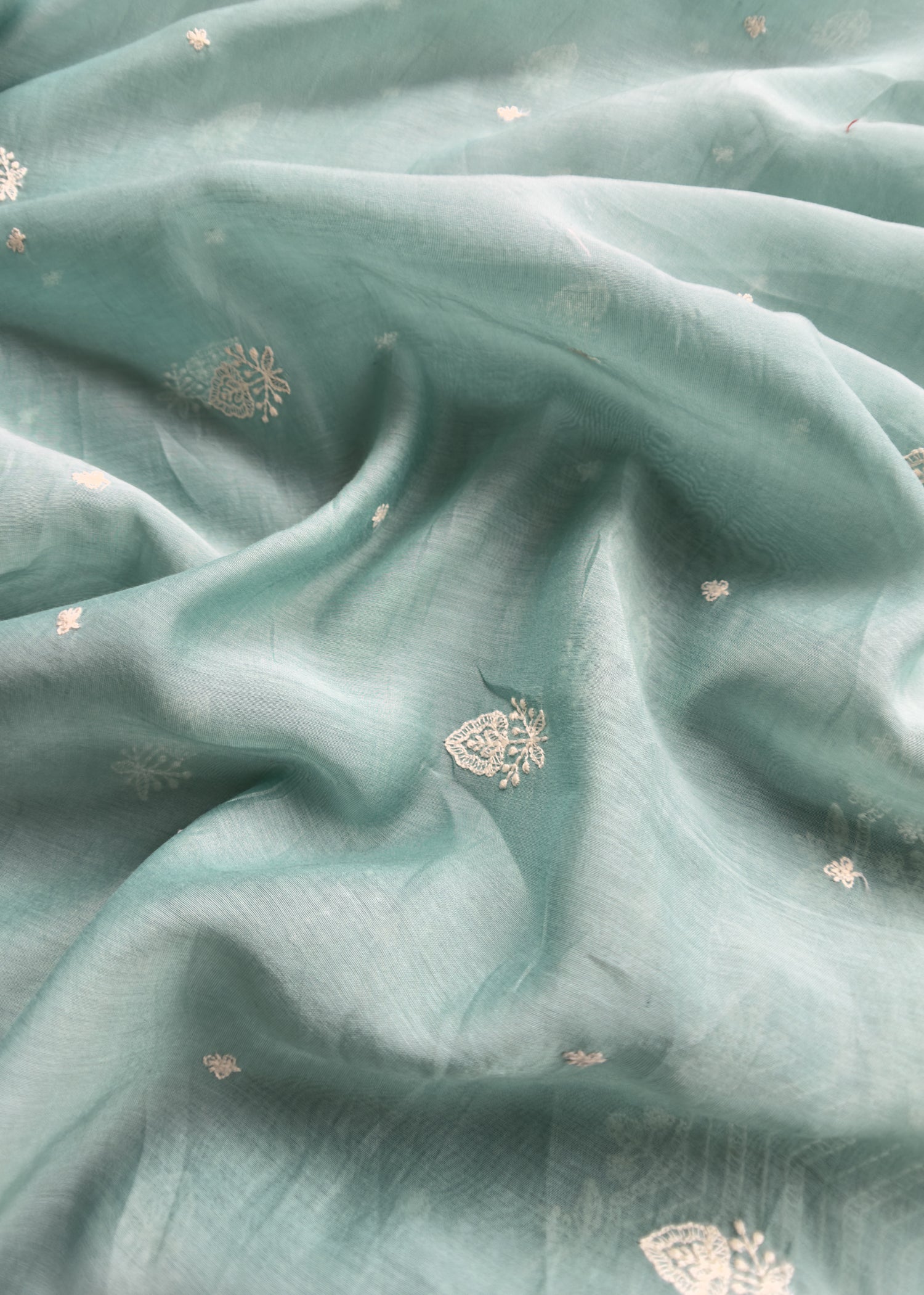 Pastel Blue Pure Mul Suit With Chikan Embroidery