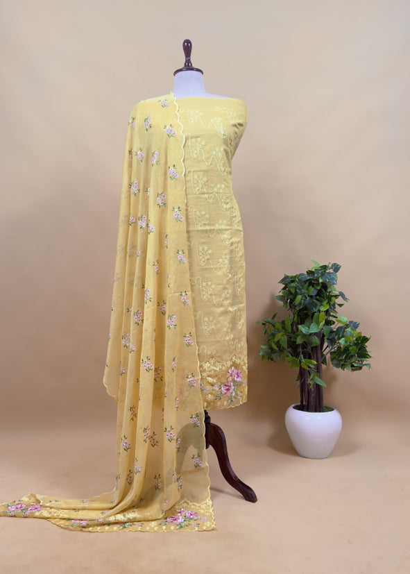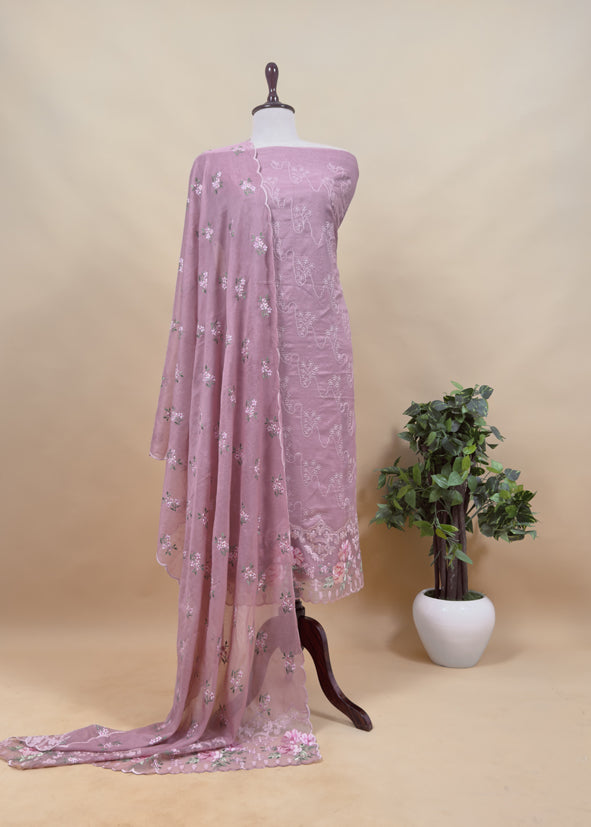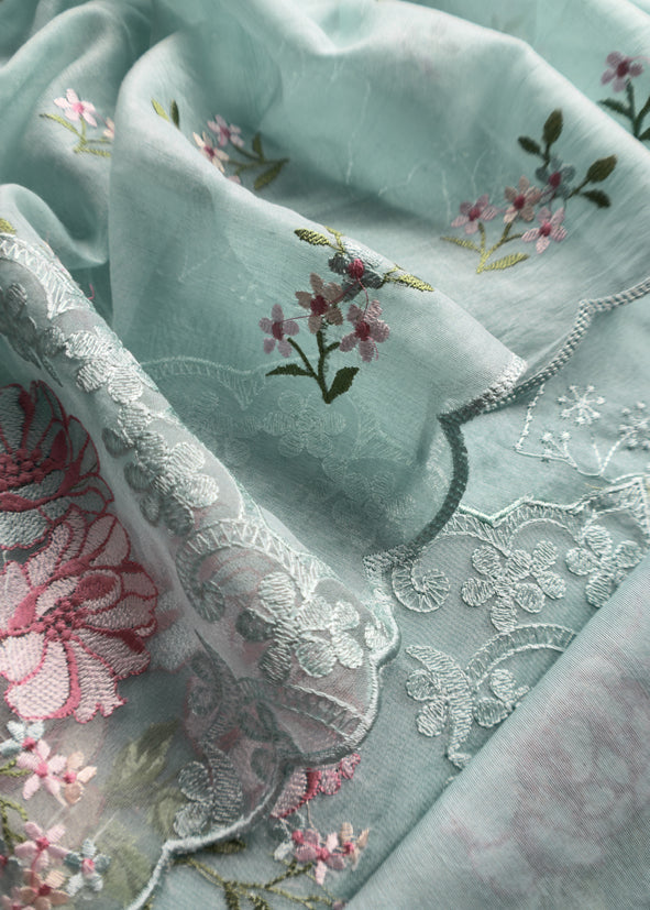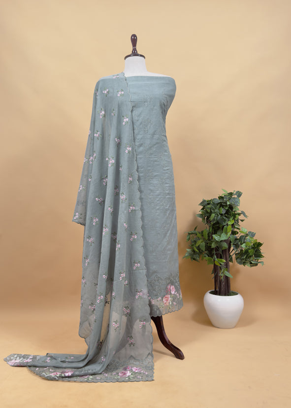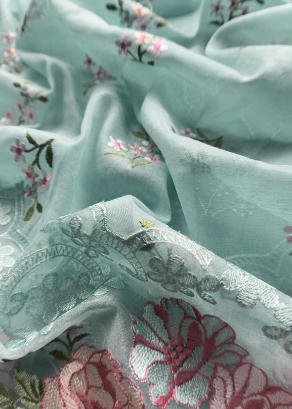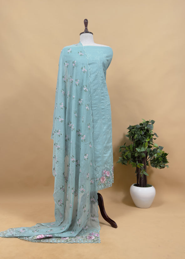Pastel Blue Pure Mulmul Suit Fabric With Floral Resham Embroidery
