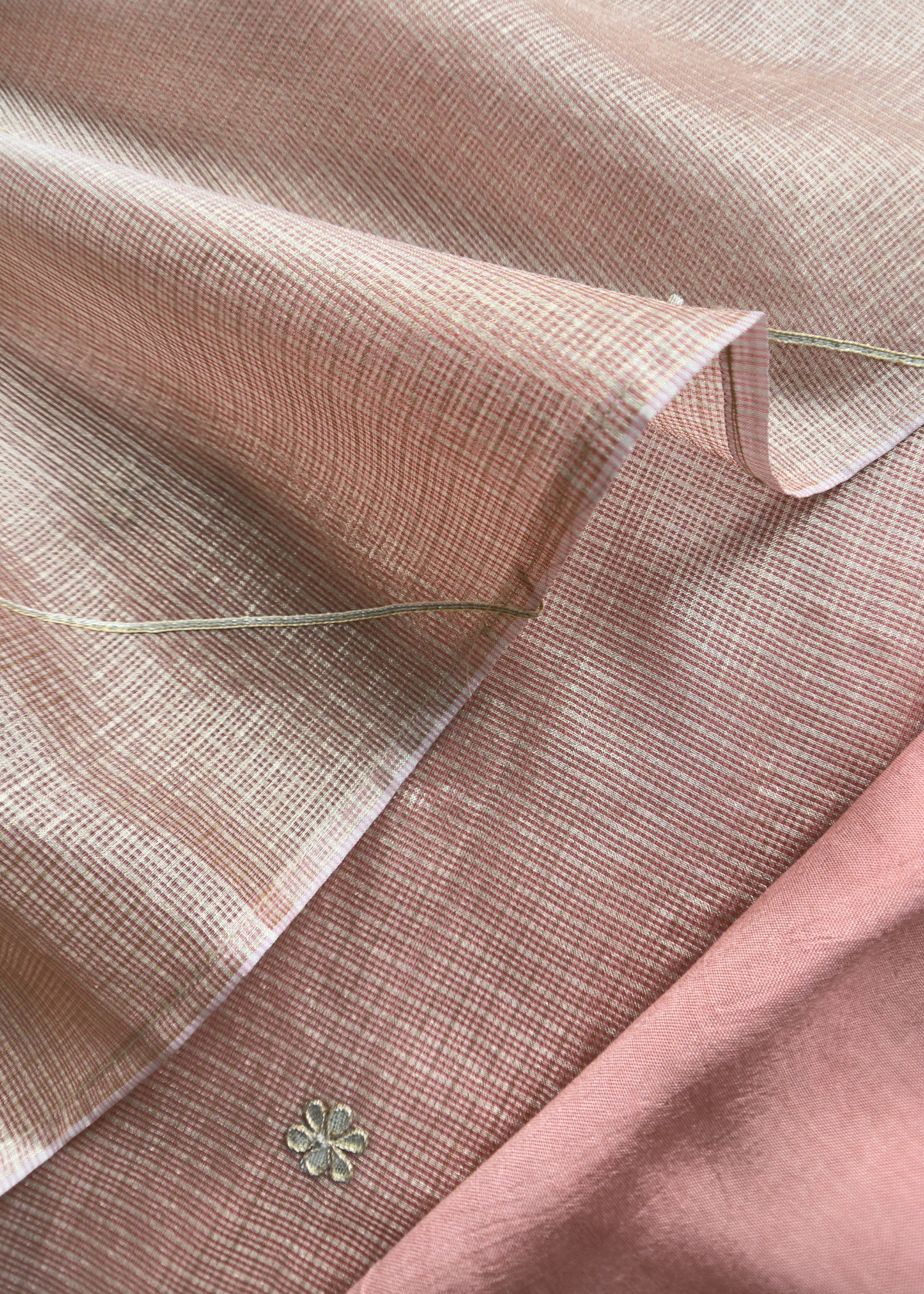 Peach Tissue Kota Unstitched Suit With Hand Sequins Work