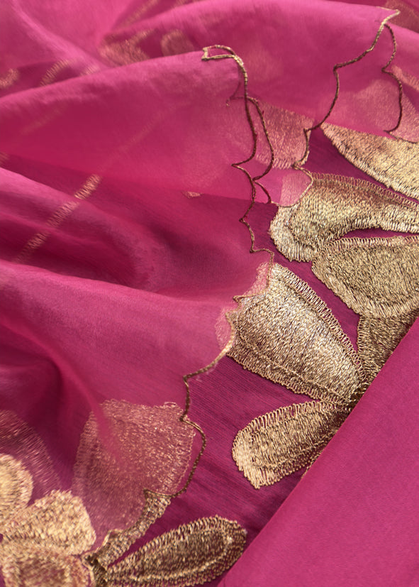 Pink Chanderi Kurta With Organza Dupatta Having Zari Embroidery
