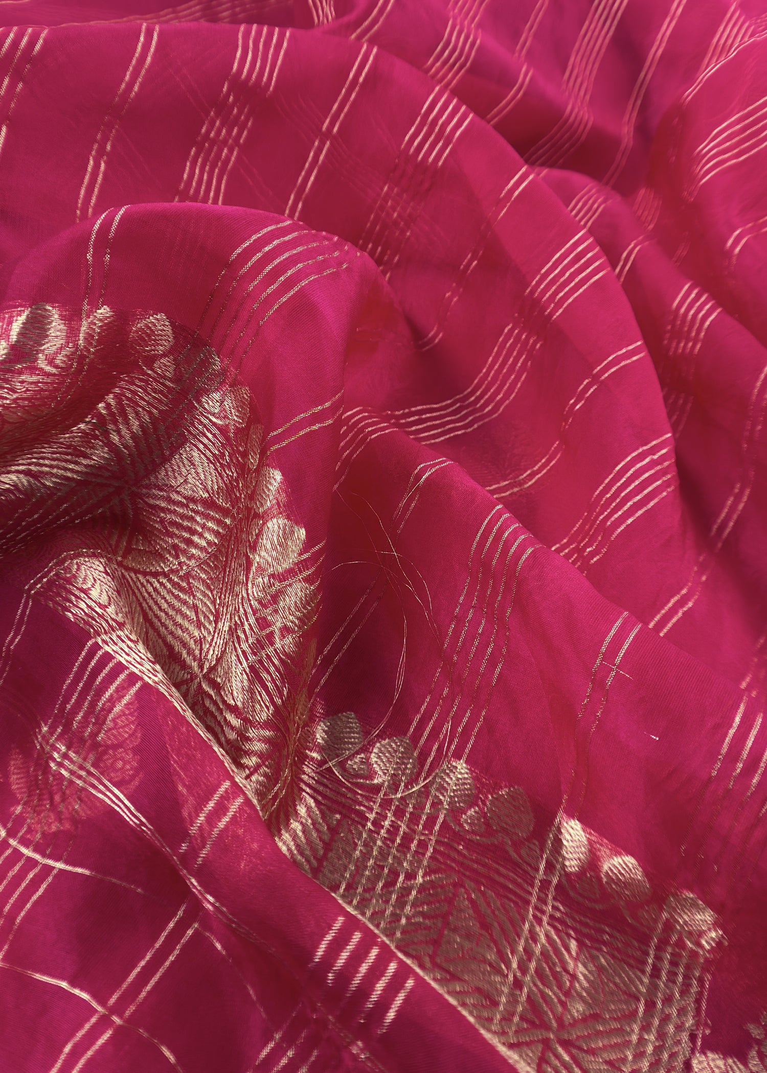 Pink Handloom Kadwa Weaving Silk Suit With Kora Silk Dupatta