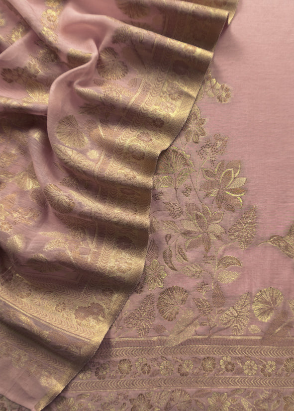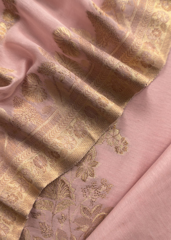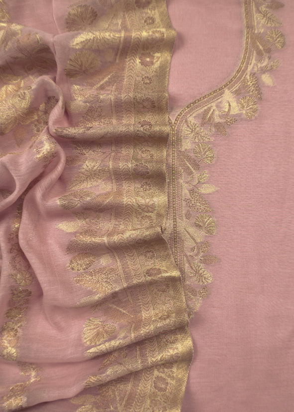 Pink Premium Kani Silk Suit With Kani Zari Weaving