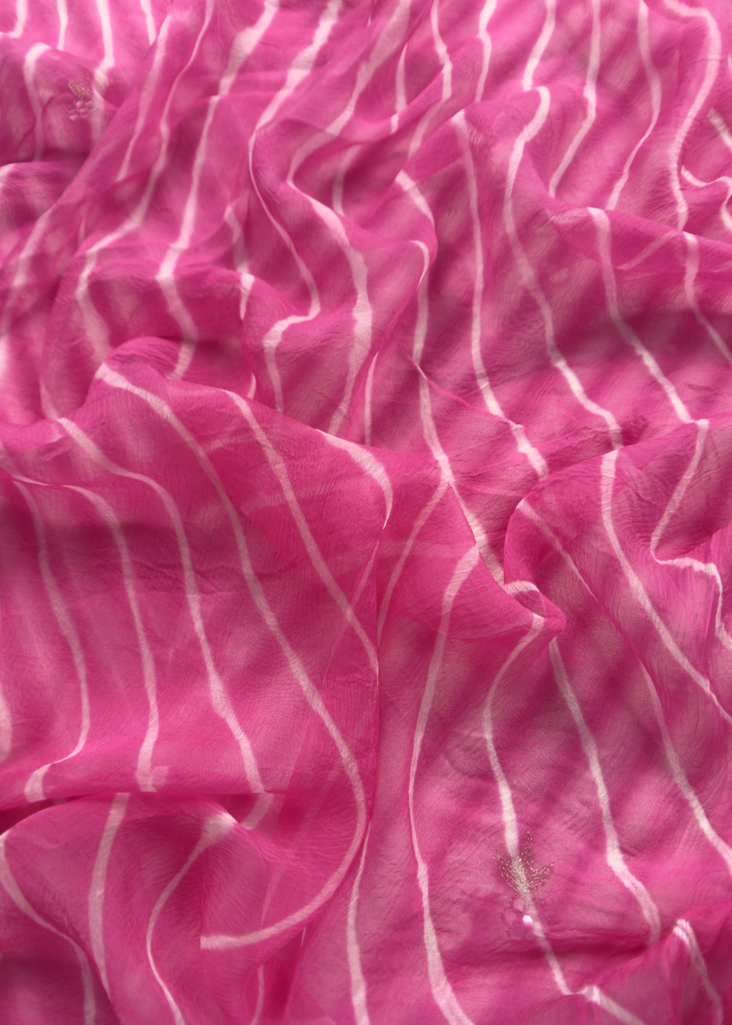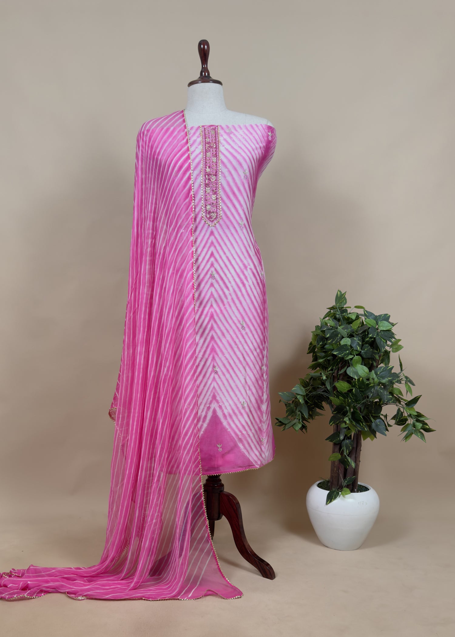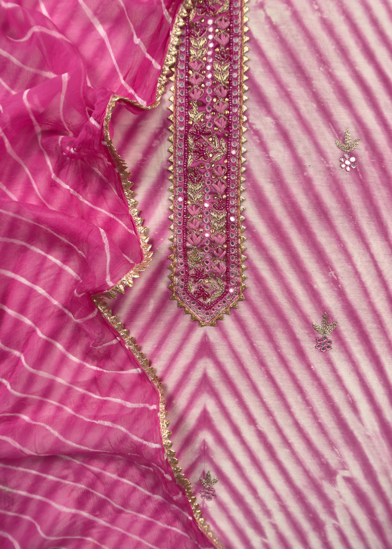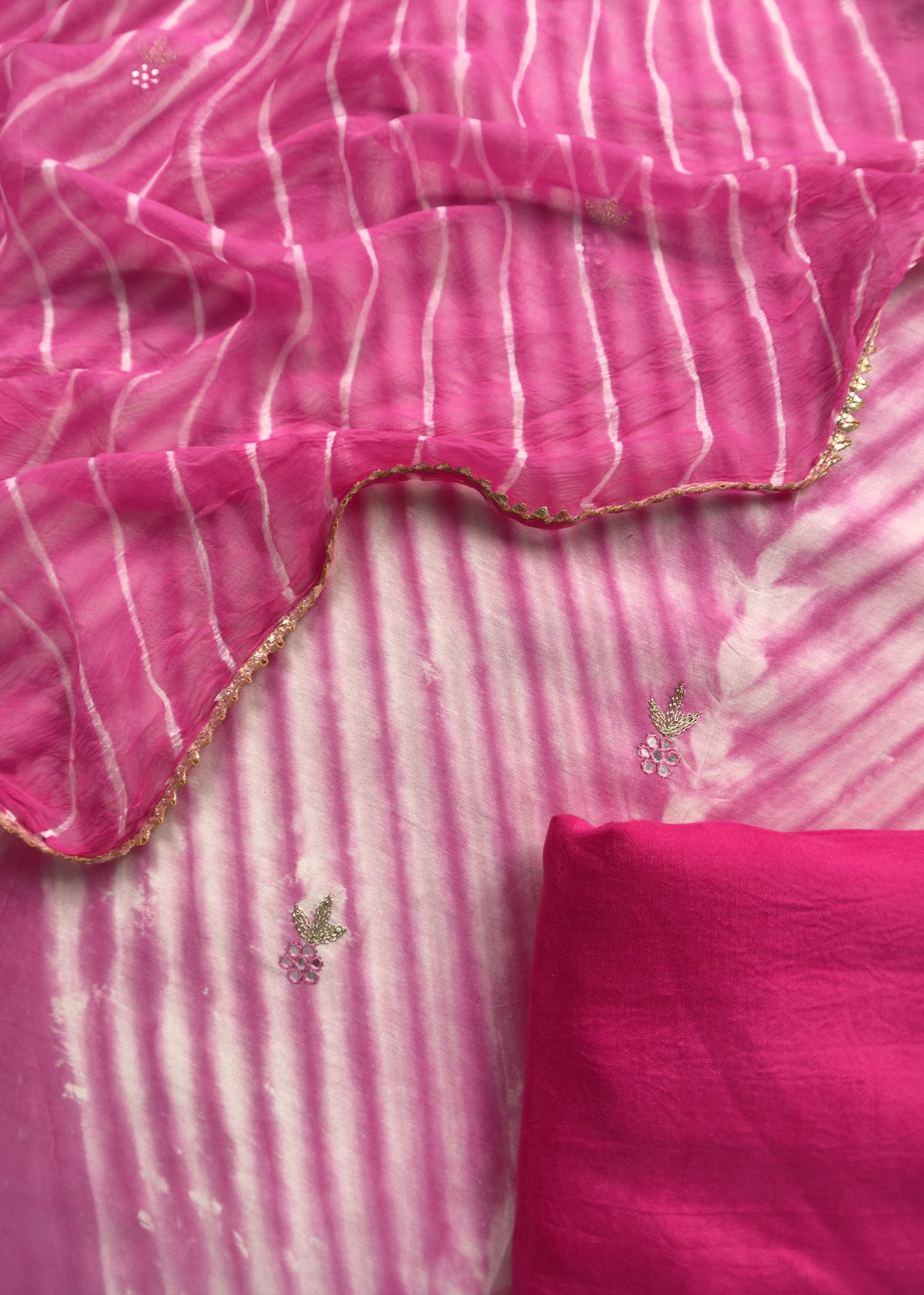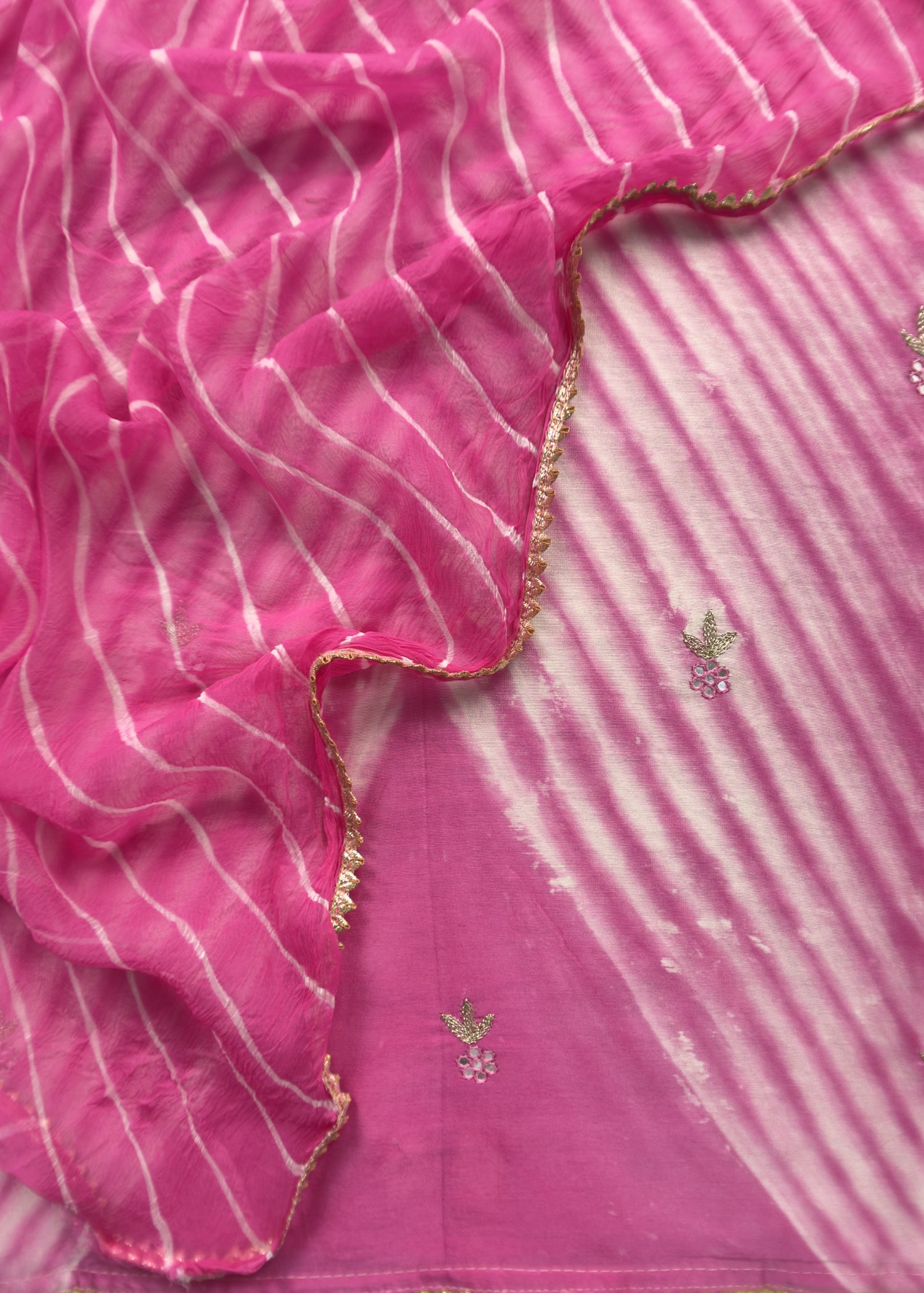 Pink Tie And Dye Leheriya Pure Chanderi Dupatta Suit With Gotapatti And Handwork