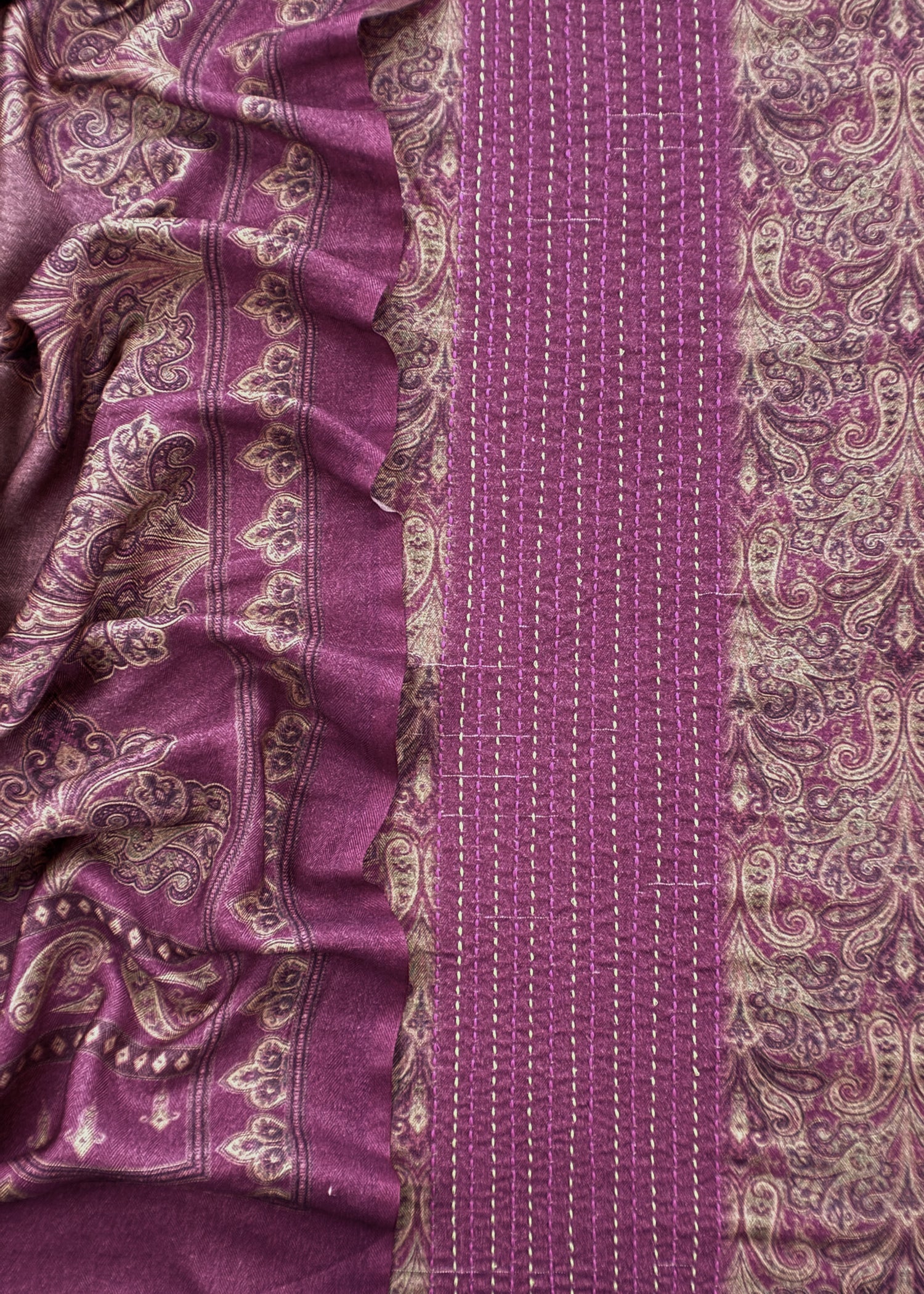 Winters Spun pashmina digital print suit fabric with Kantha embroidery