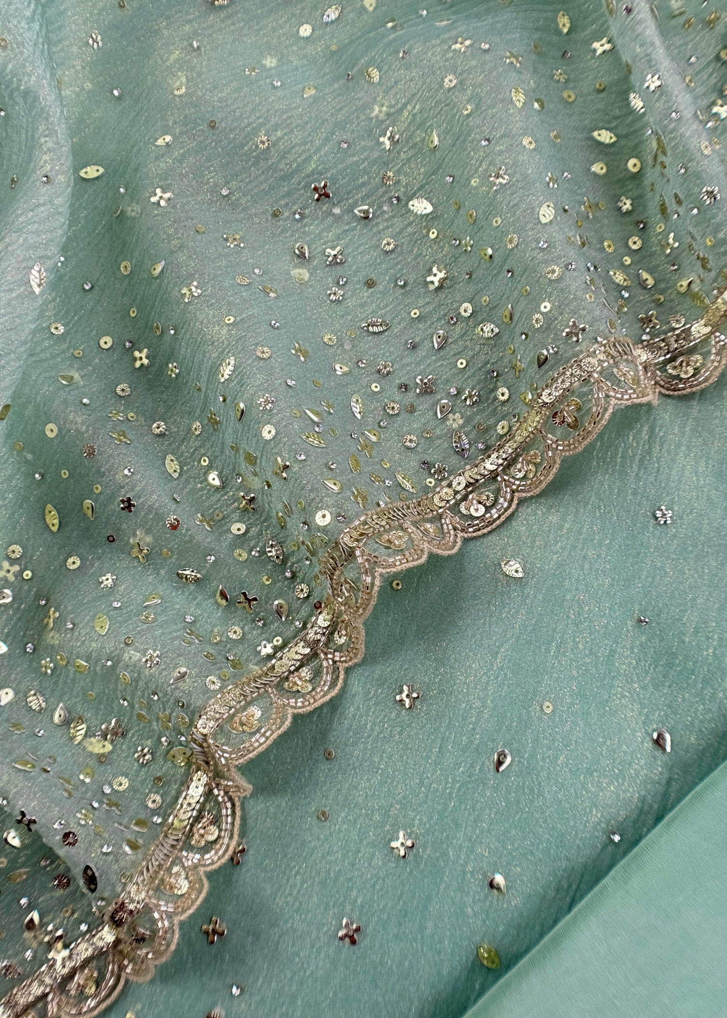 Powder Blue Crushed Tissue Silk Suit Fabric With Mukaish And Hand Work