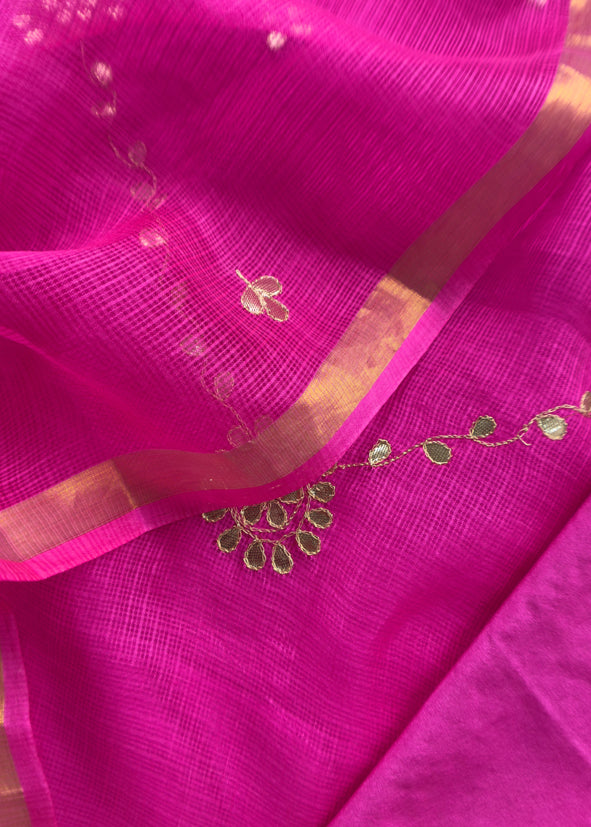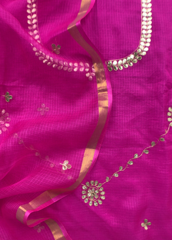 Pure Kota Doria Silk Dupatta Suit With Gotta Patti Work
