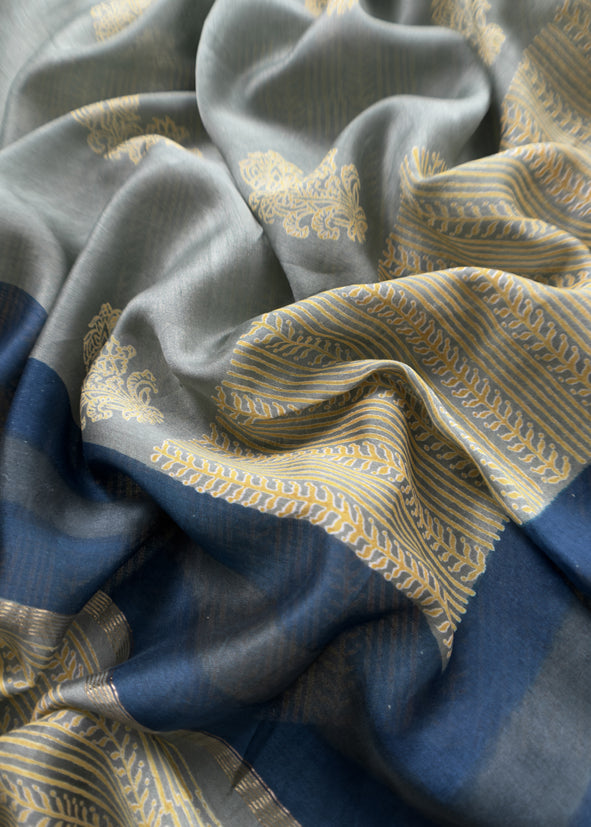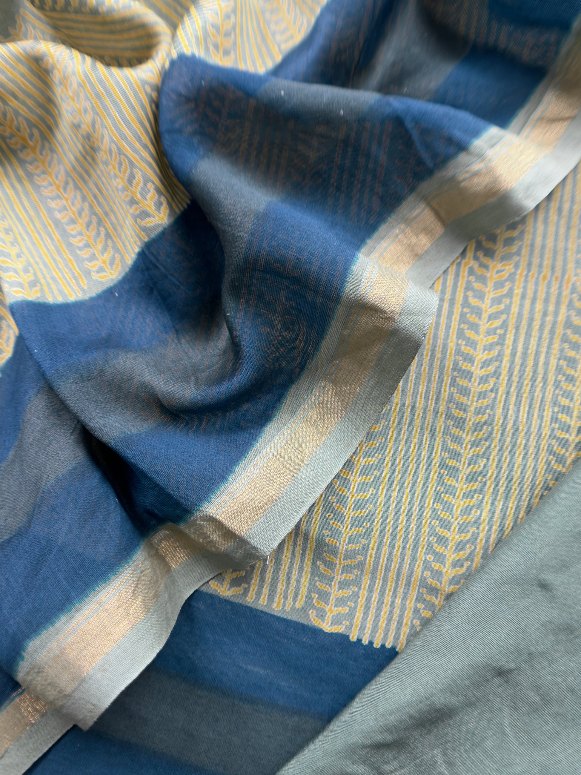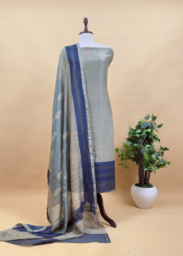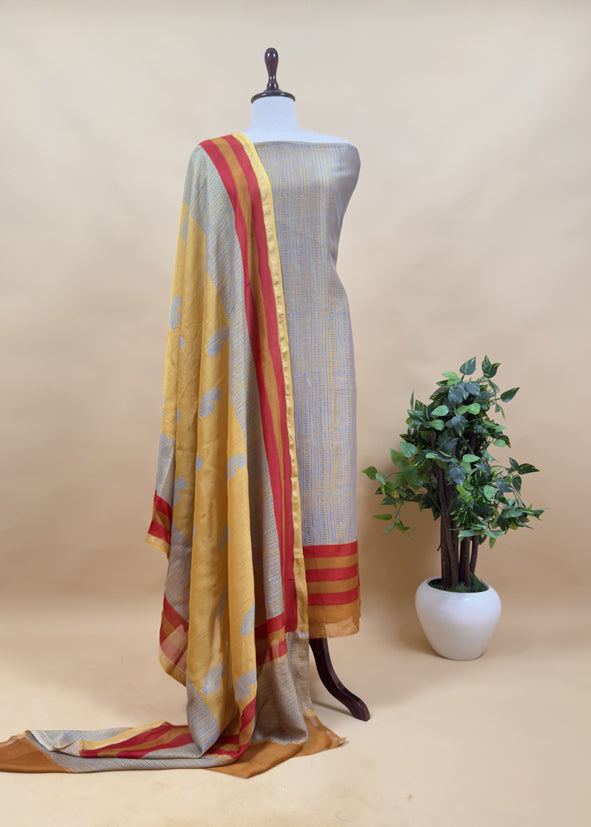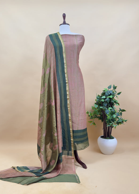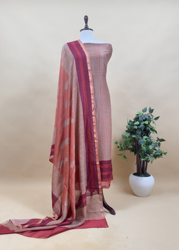 Pure Maheshwari Silk Suit With Block Print Dupatta