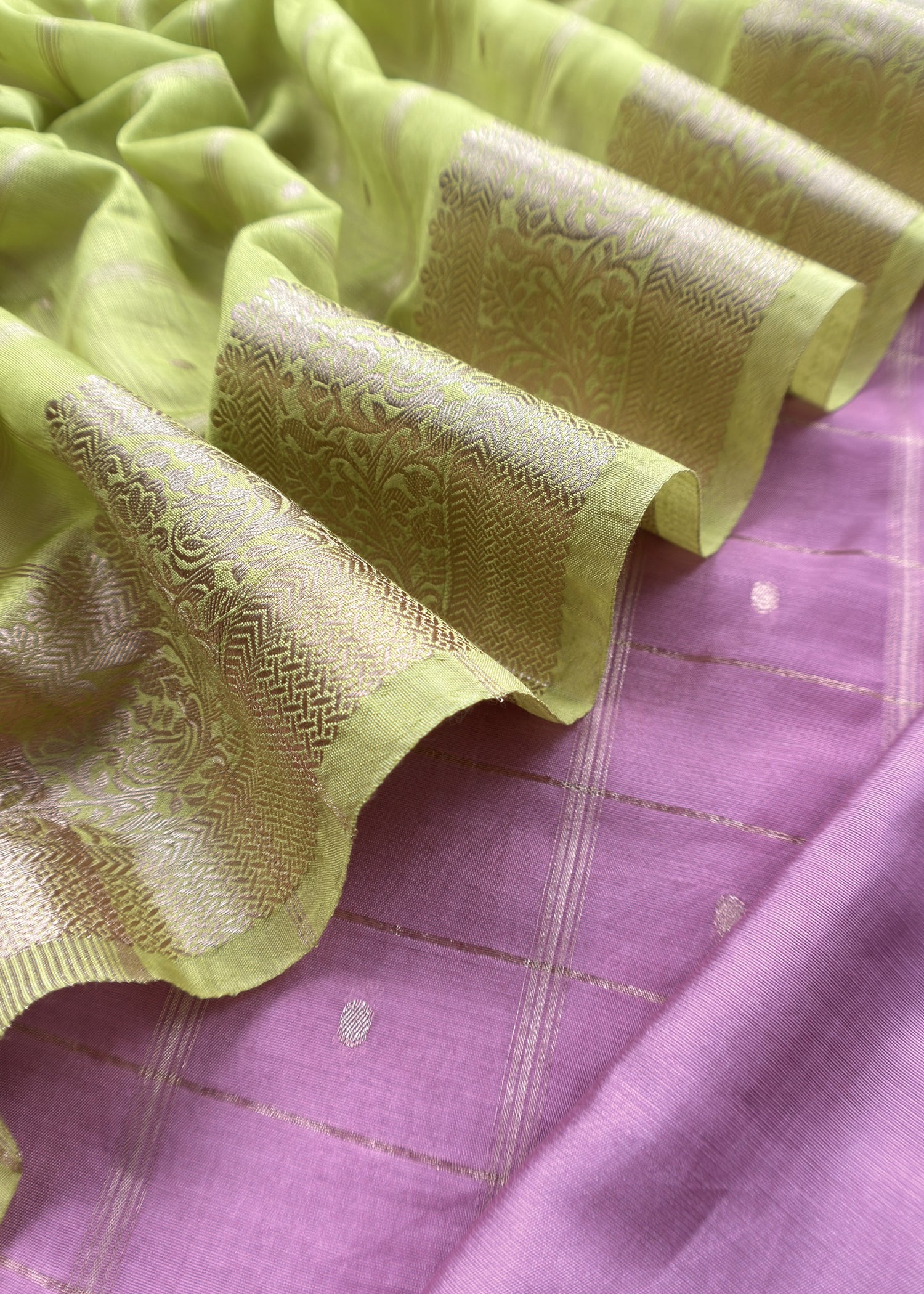 Purple and Lime Green Pure Assamese Silk Suit Fabric Zith Zari Weaving