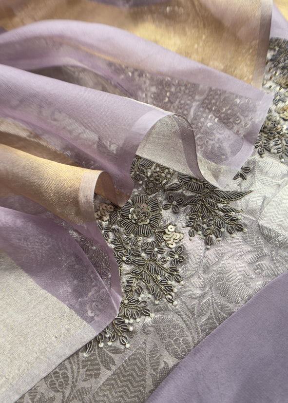 Purple Gold Varanasi Brocade Silk Kurta And Double Panel Tissue Dupatta With Handwork