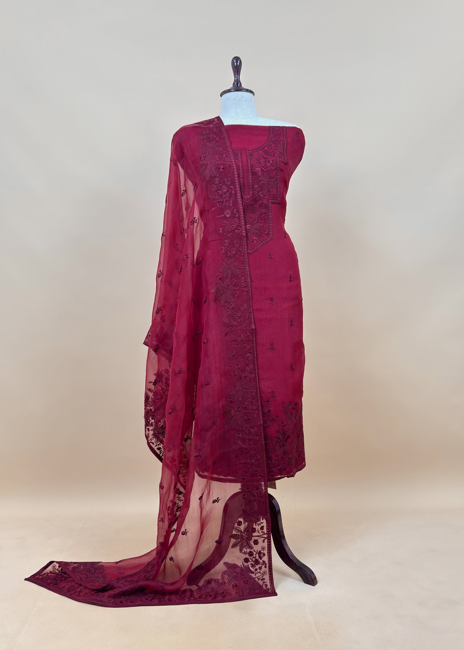 Purple Handloom Organza Silk Suit In Parsi Embroidered