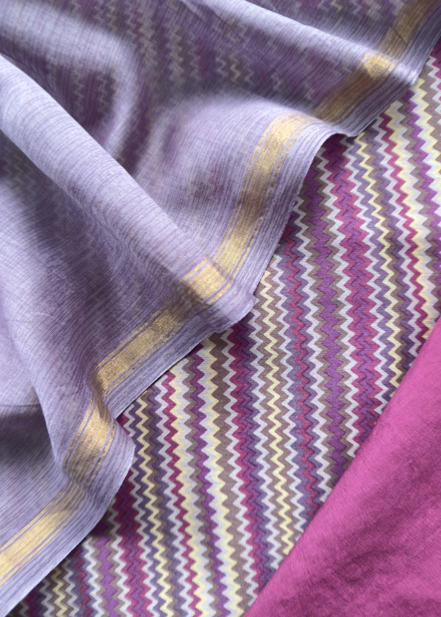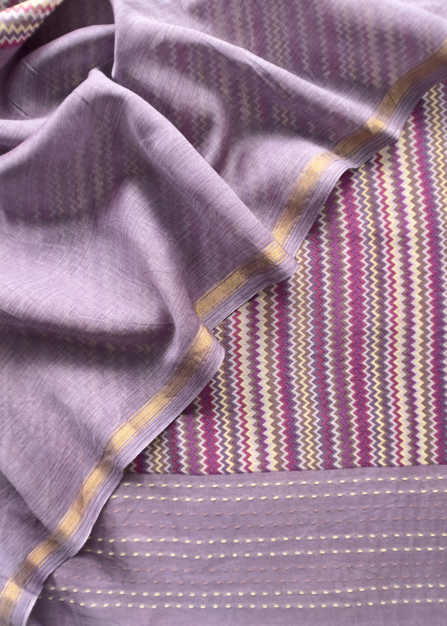 Purple Pure Maheshwari Silk Suit With Kantha Handwork