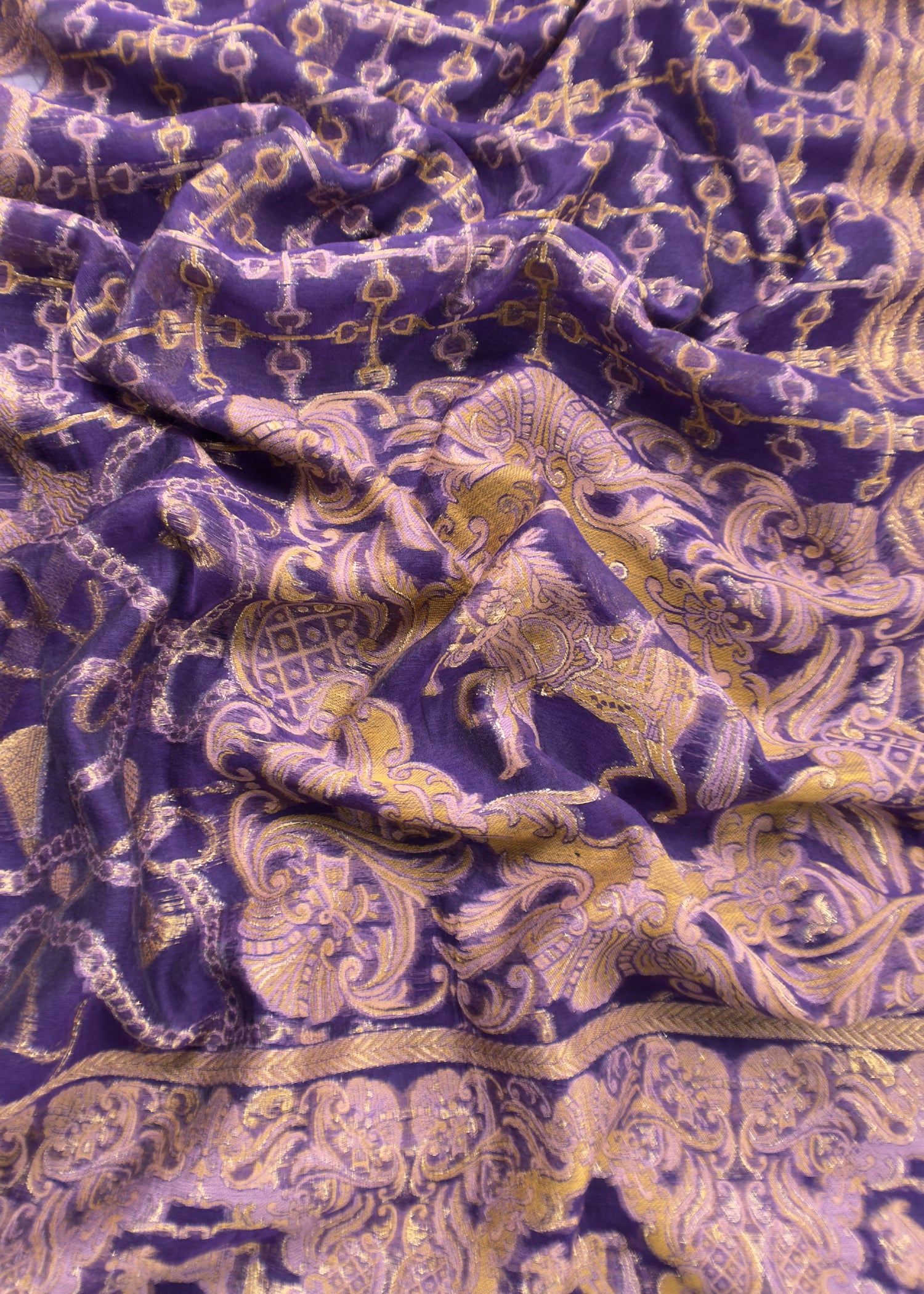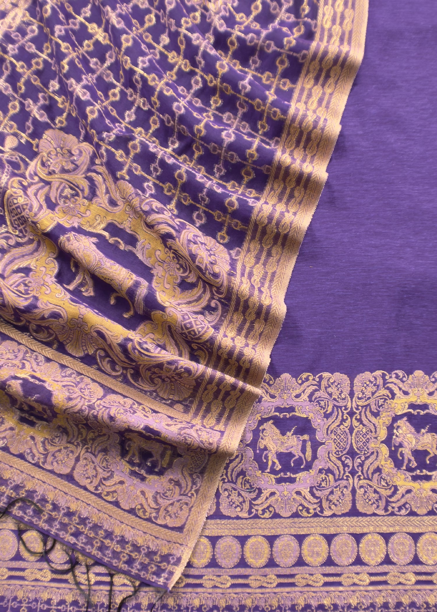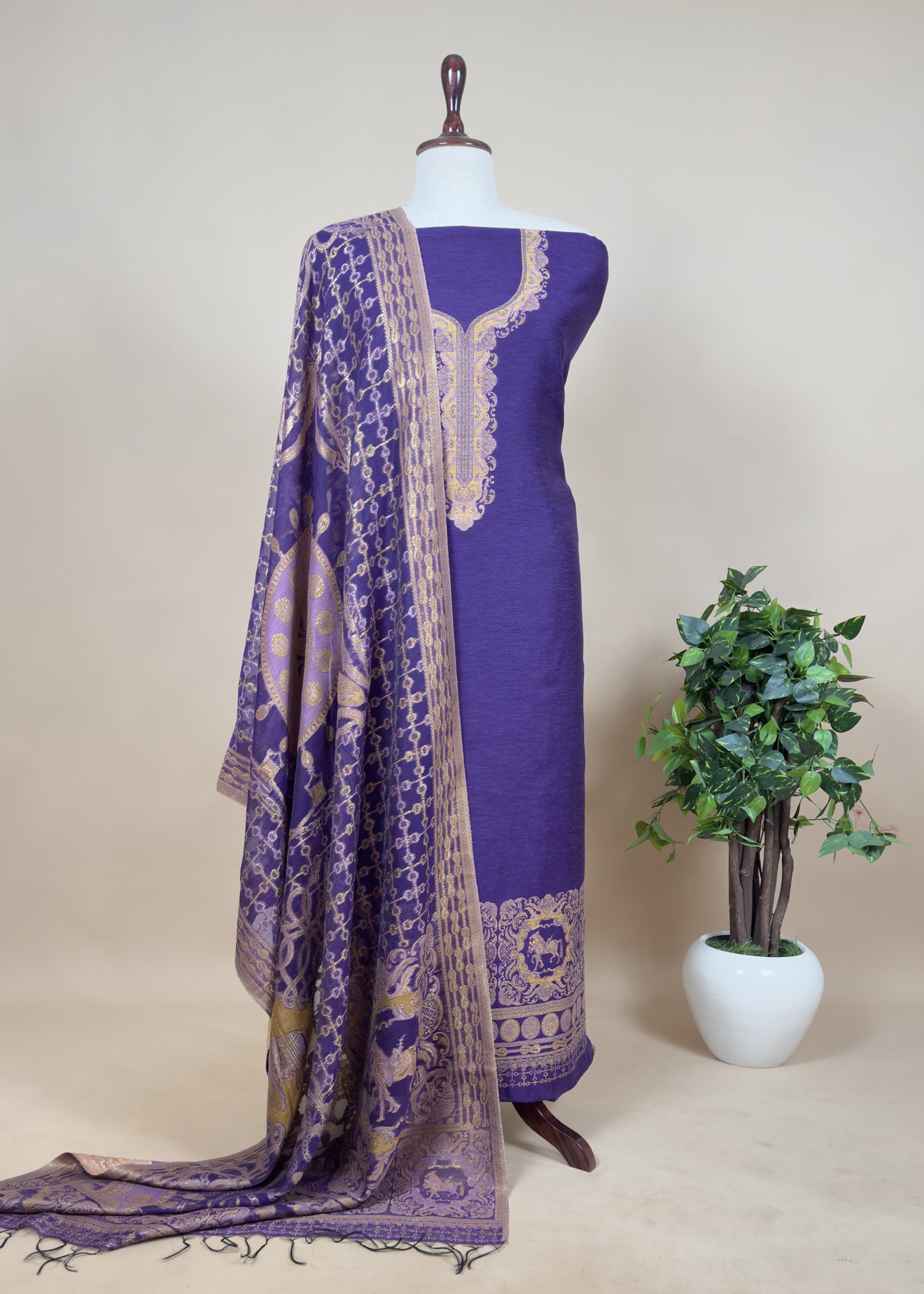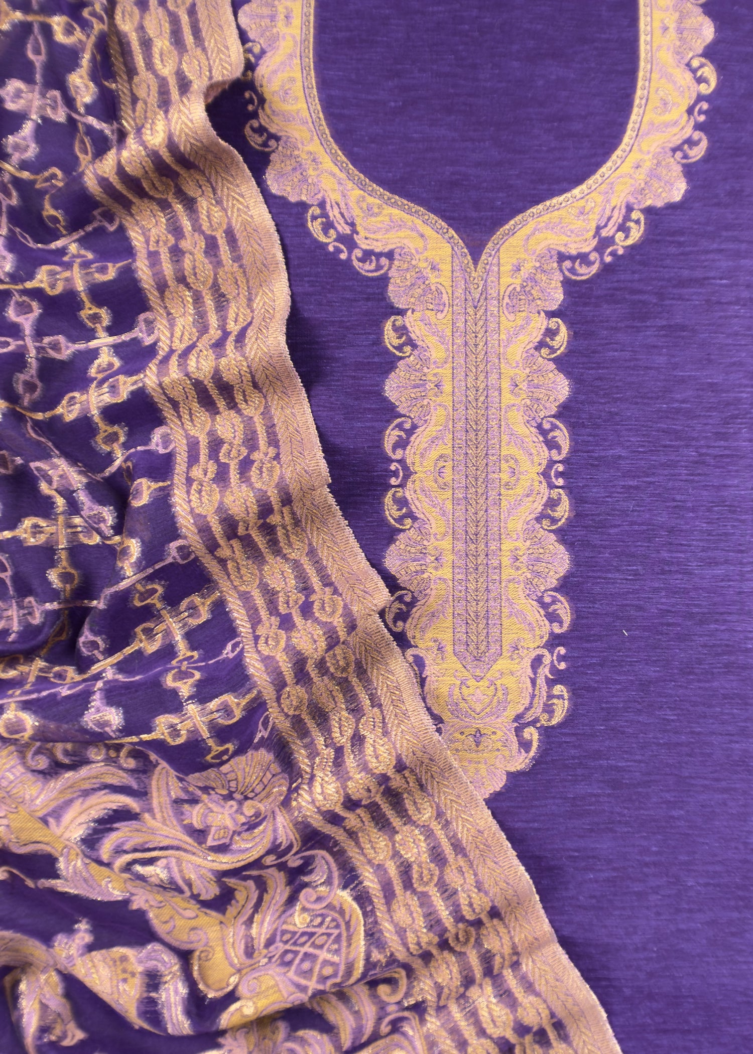 Purple Premium Kani Silk Suit With Kani Zari Weaving