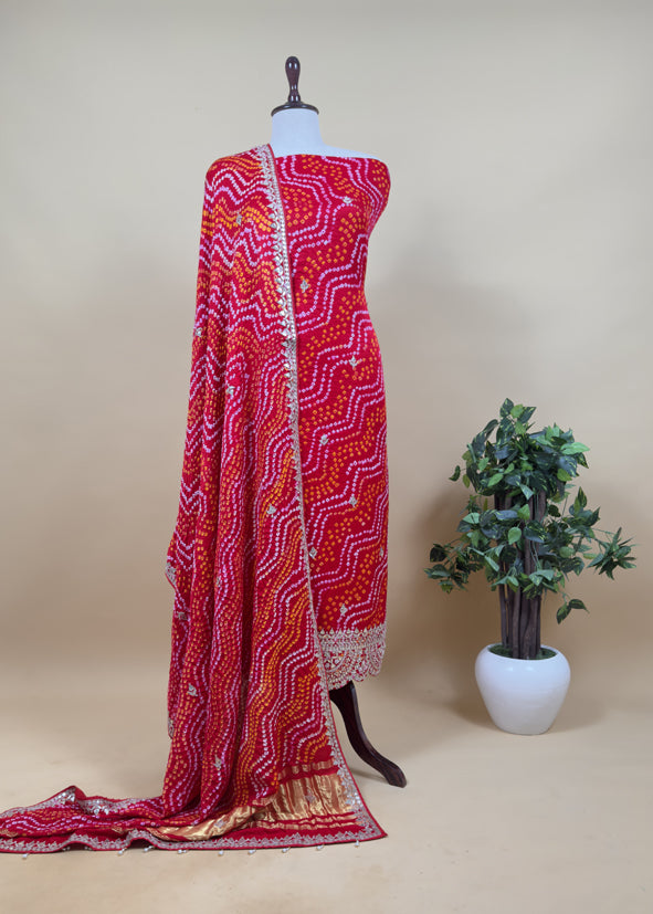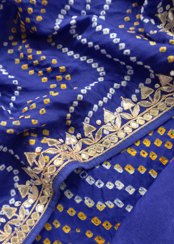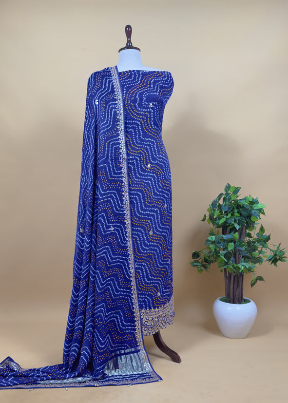 Rangreza Bandhej Blue Handloom Gajji Silk Suit With Weaving And Gota Patti Handwork
