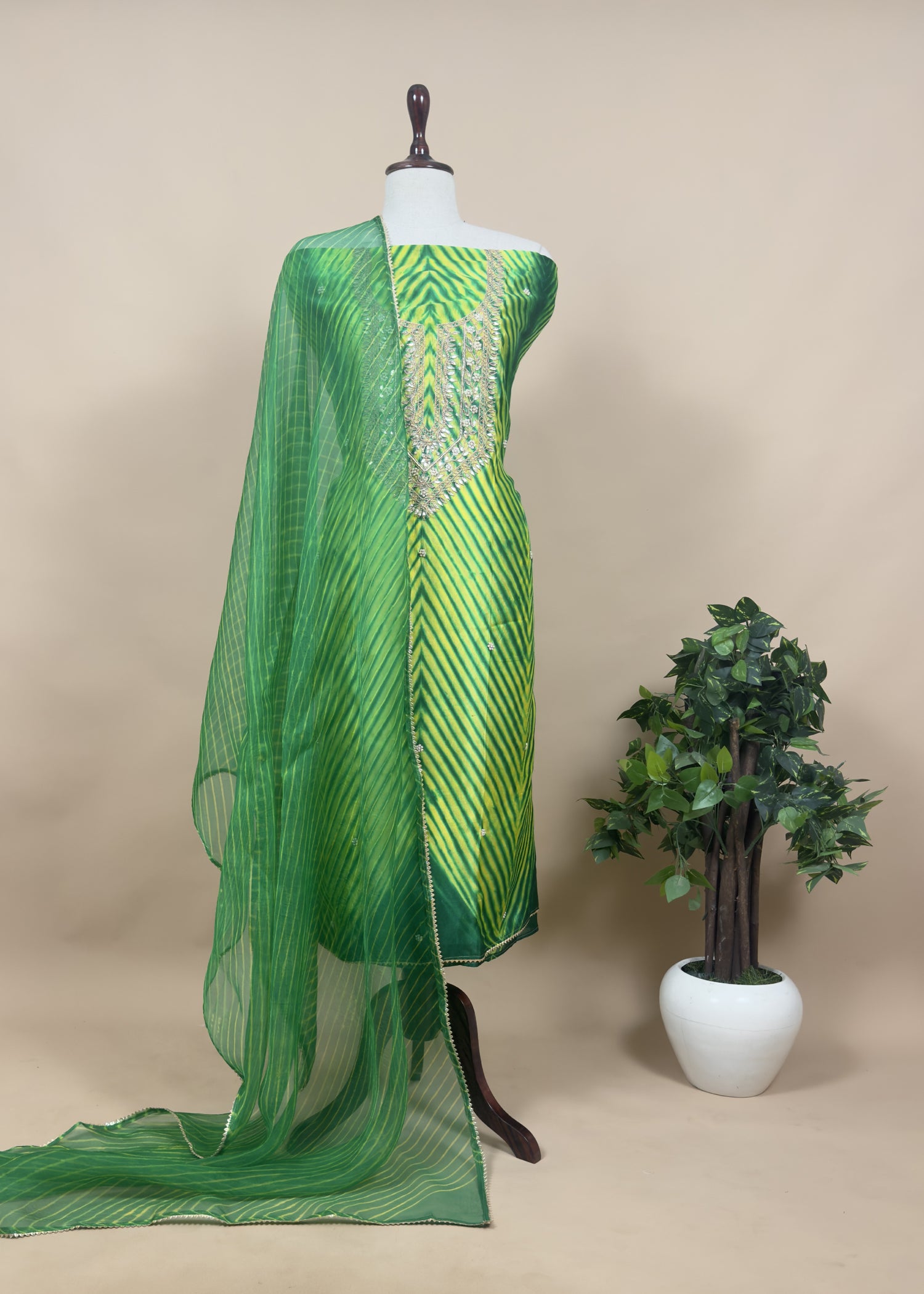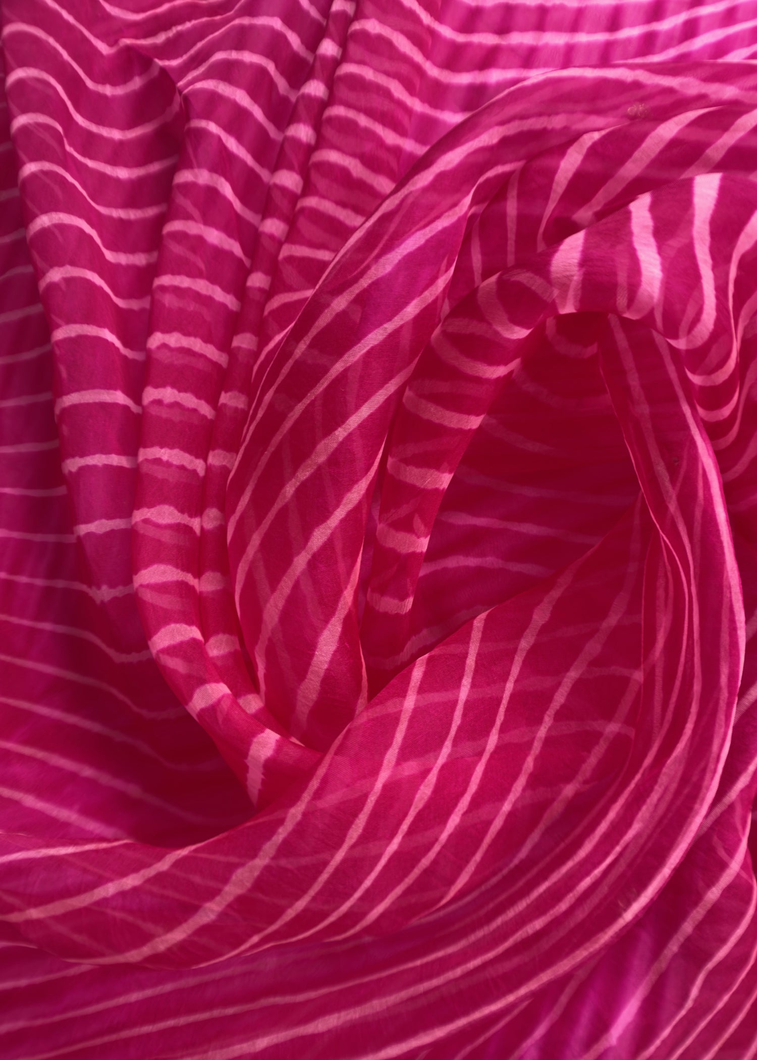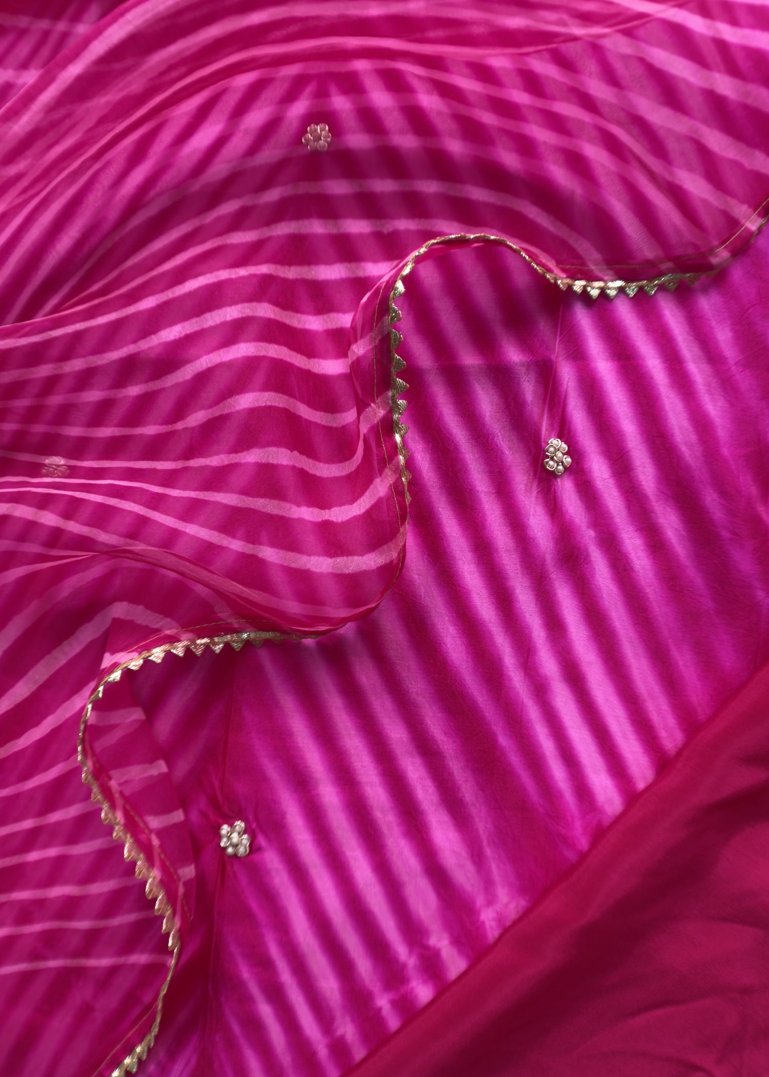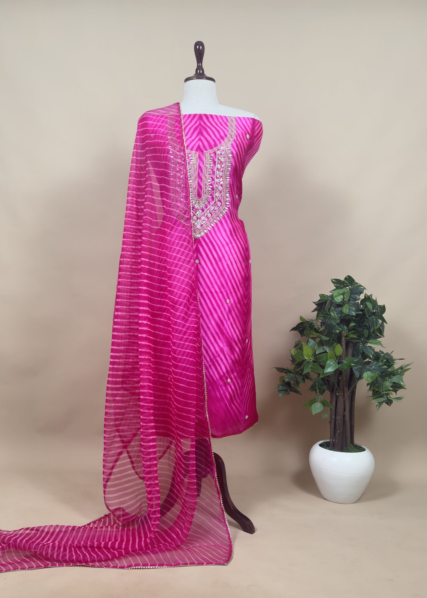 Rani Pink Leheriya Upada Silk Suit With Organza Dupatta And Gotta Patti Handwork
